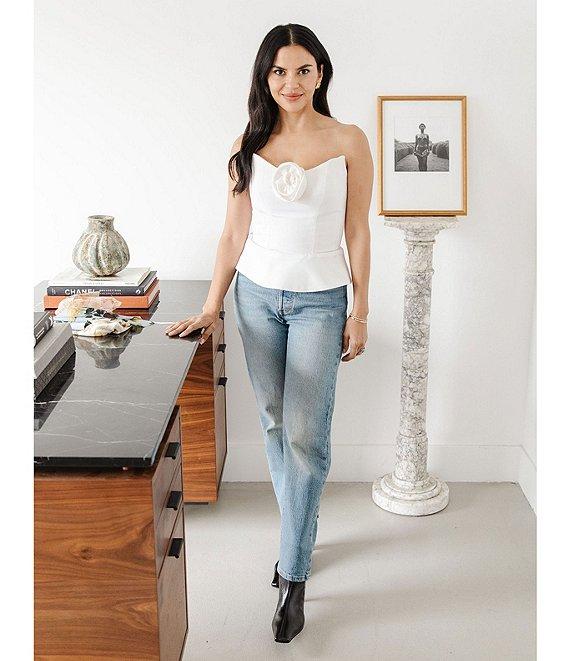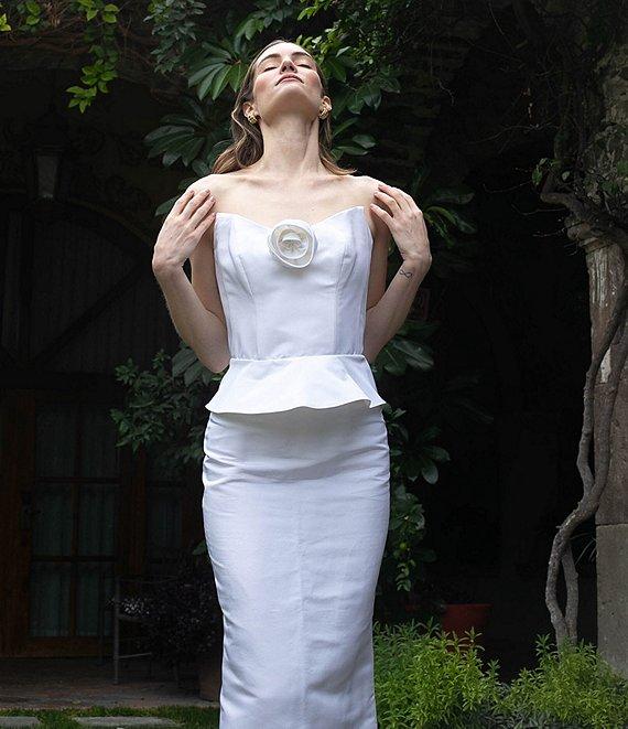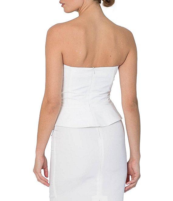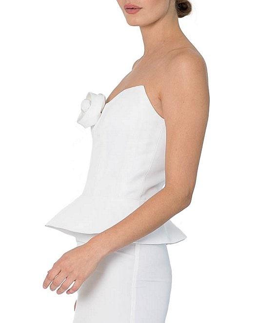 Damaris Bailey Rosette Sweetheart Neck Strapless Silk Corset Peplum Top