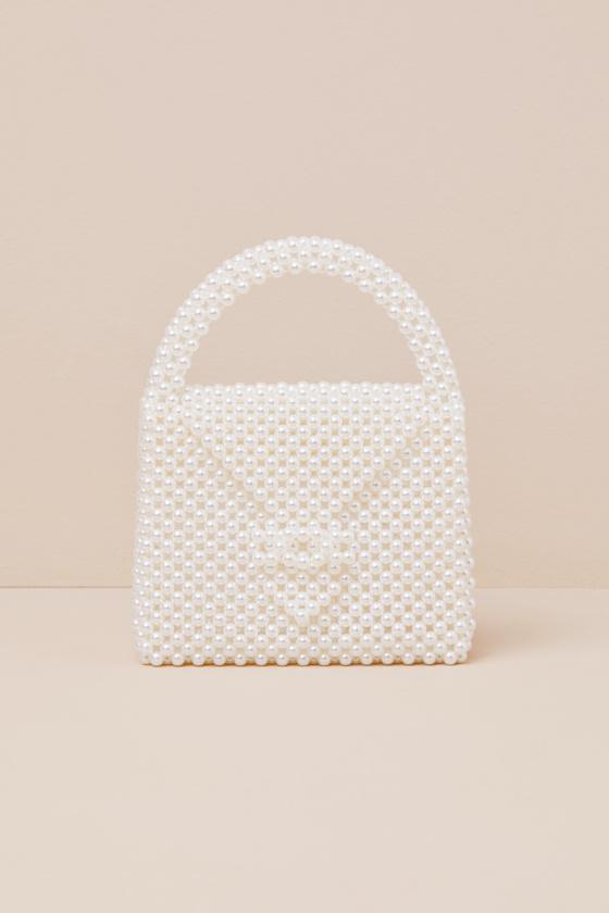 Dress like the catch that you are by adding this pearly mini handbag to your ensemble, crafted with a luxe and luminous beaded construction. The compact, flat-bottom design features a sturdy top handle and an envelope-style front flap that reveals a roomy interior, perfect for storing the essentials.