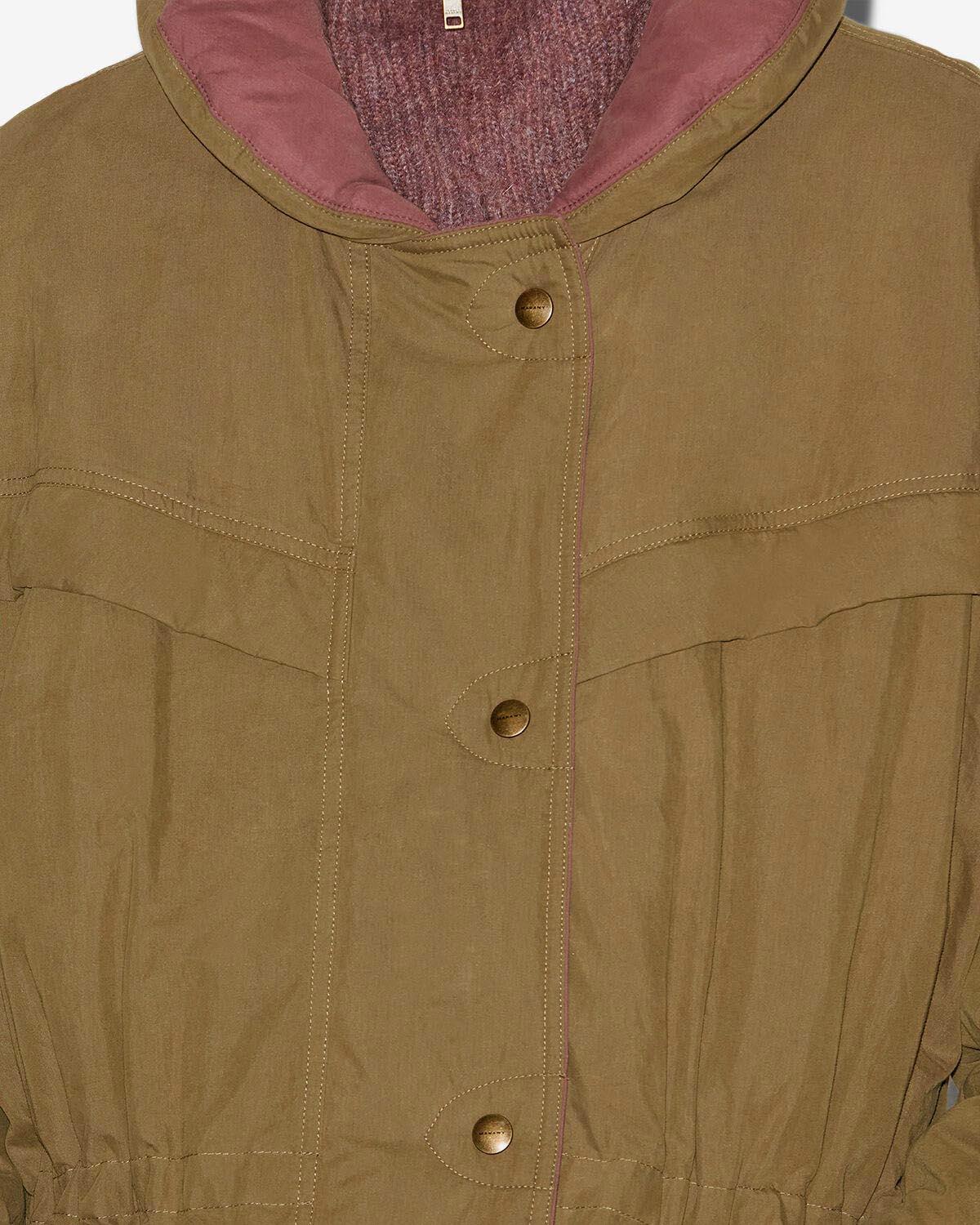 Two-toned cotton jacketRound zip-up collar with built-in hoodSnap-fastened and zippered in frontTurn-down shouldersLong sleevesStraight cuffs with snap-fastened tabsFitted waist with drawstringPockets with snap-fastened flapsCotton liningZippered inside pocketRelaxed fitStyle: MA0428FAC3G01E67KI DAMONE