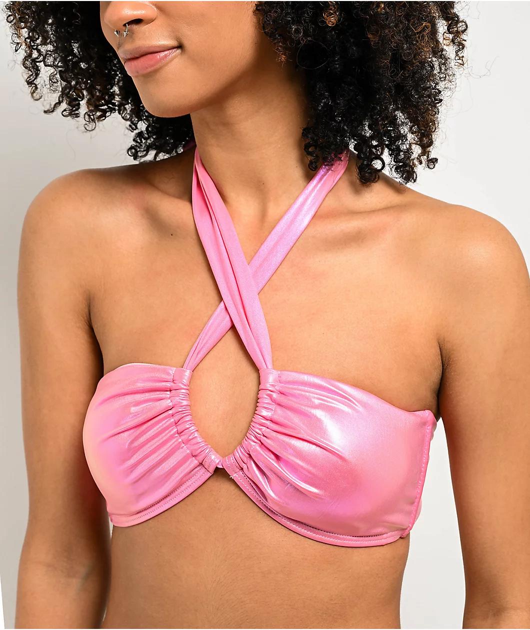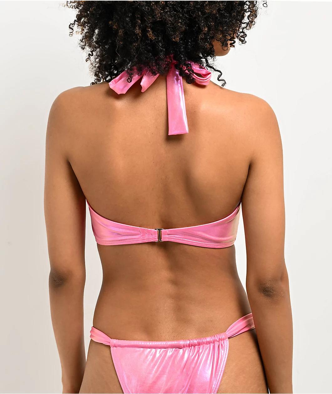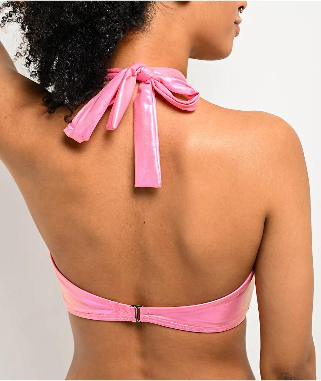 Damsel Kenni Pink Chrome Metallic Halter Bikini Top