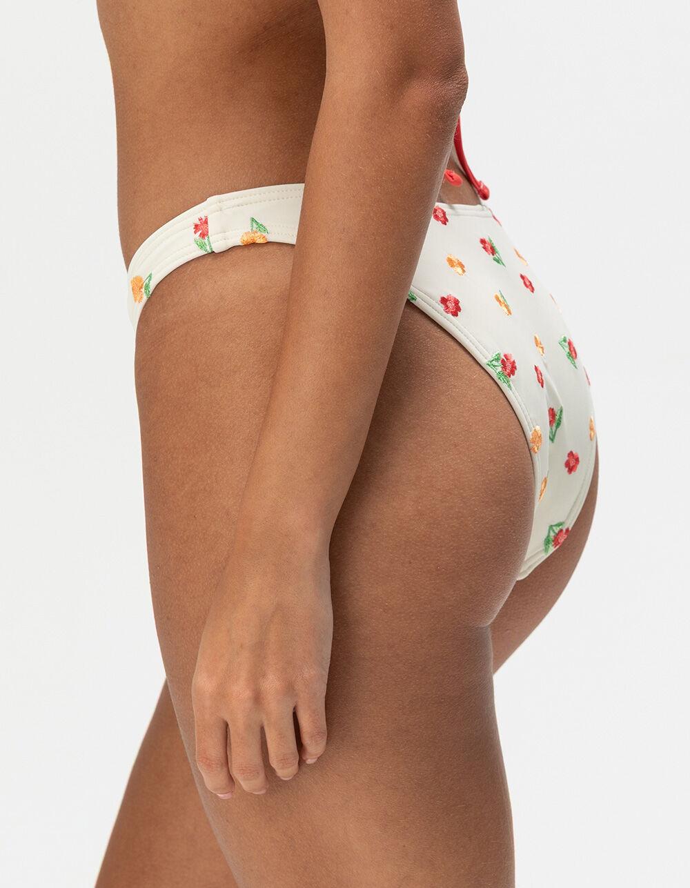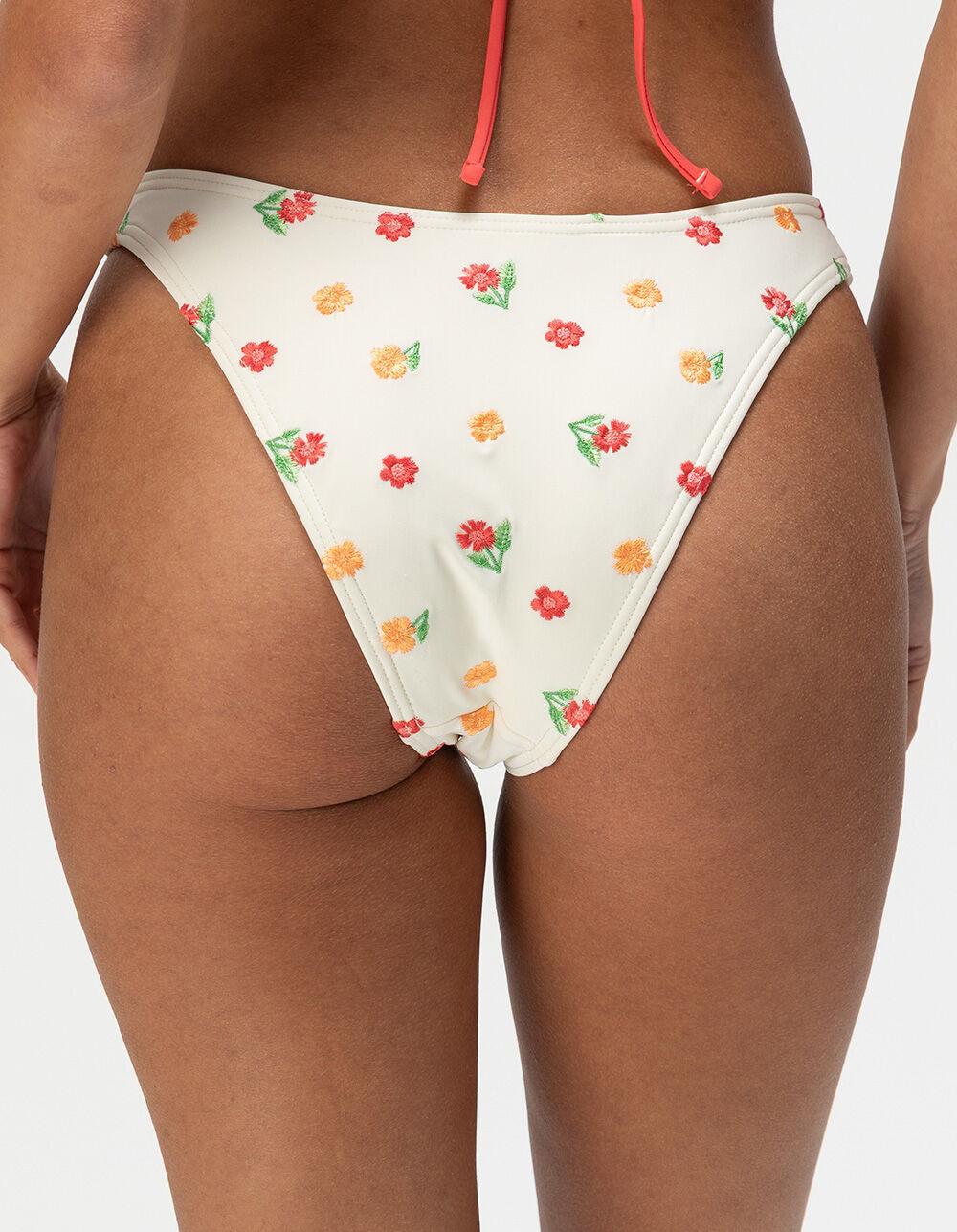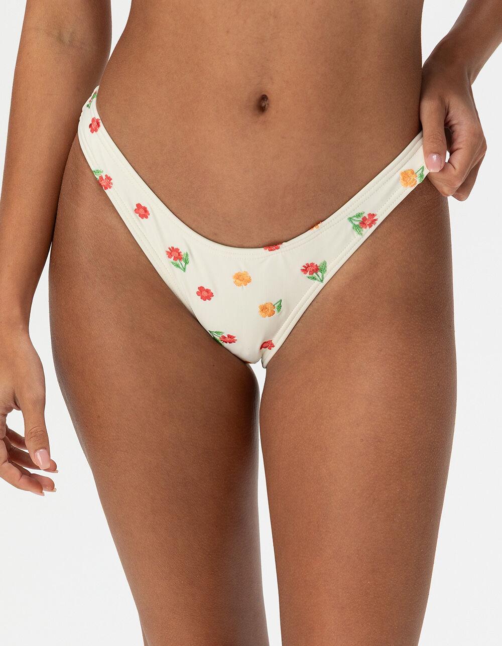 WHITE. Damsel Morgan High Leg Bikini Bottoms. These bikini bottoms are crafted from soft fabric and feature allover embroidered floral details. High leg cut. 82% Polyester 18% Spandex. Lining: 90% Polyester 10% Spandex. Hand wash. Imported.