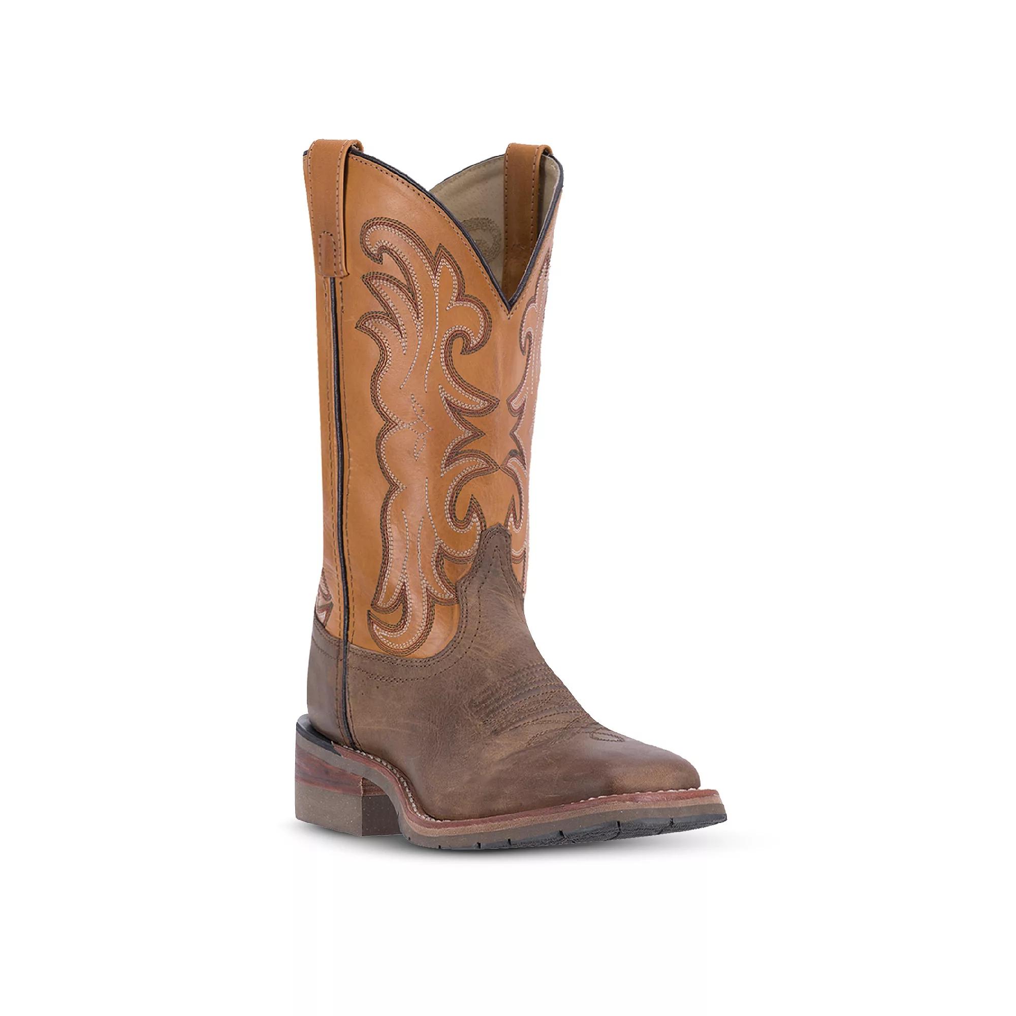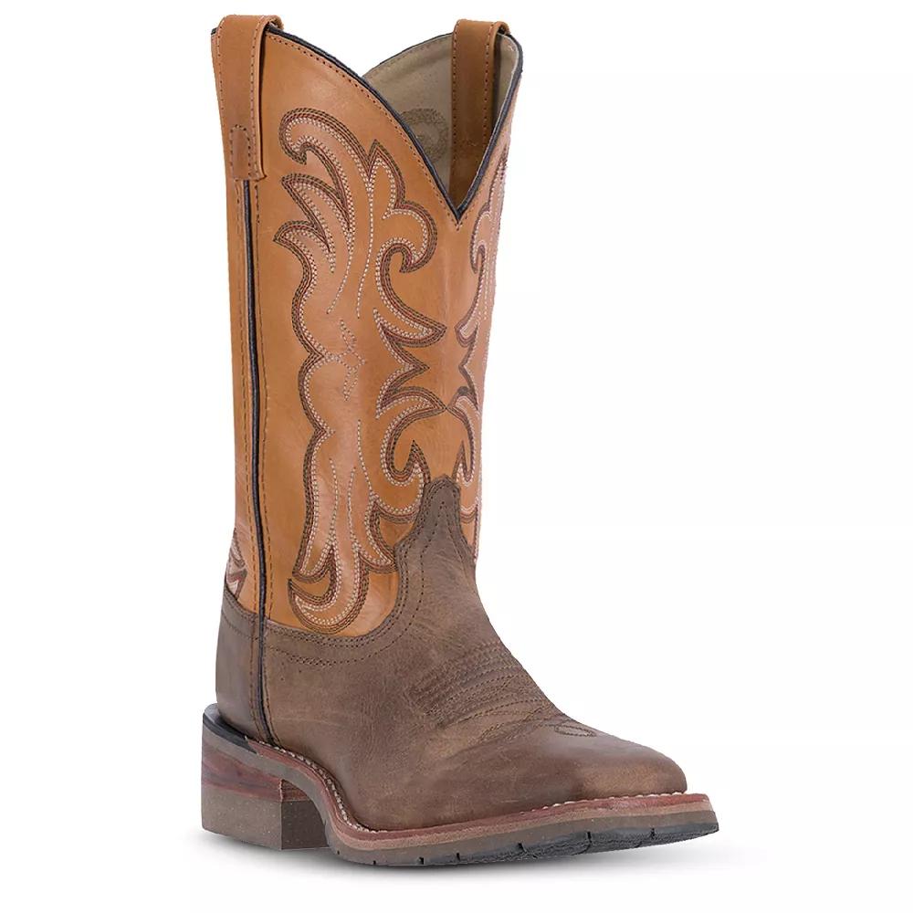 Please click for Dan Post heel slip information. Please click for Dan Post Soft Strike Comfort System information. Superior durability, comfort, and style are in perfect harmony with the Dan Post Ferrier boot. Tan distressed leather upper. Broad square toe. Shaft features intricate Western stitching and contrast piping. Distressed detail on foot. Side pull tabs for easy entry. Leather lining for a more comfortable fit and feel. Work welt construction. Cambrelle-covered, cushioned insole provides all-day comfort. Stockman heel. Durable rubber outsole. Imported. Measurements: Heel Height: 1 3 4 in Weight: 2 lbs Circumference: 15 in Shaft: 12 in Product measurements were taken using size 12, width 2.5E - Extra Wide. Please note that measurements may vary by size.