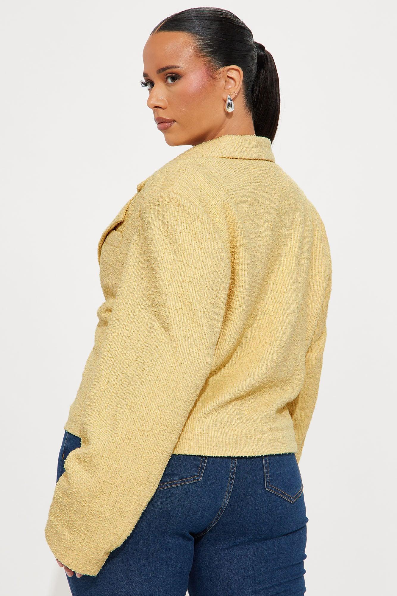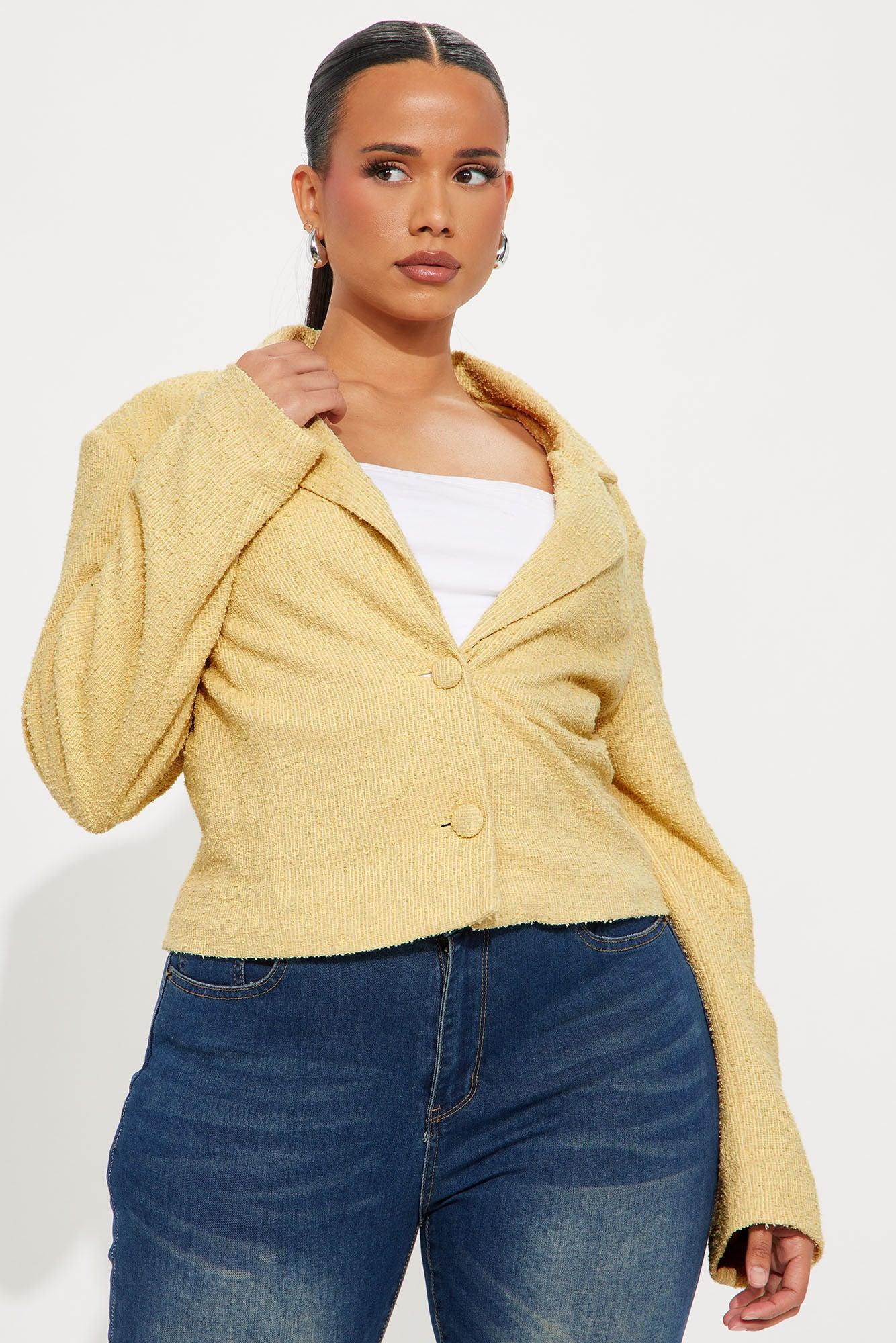 Dana Cropped Solid Tweed Blazer - Yellow