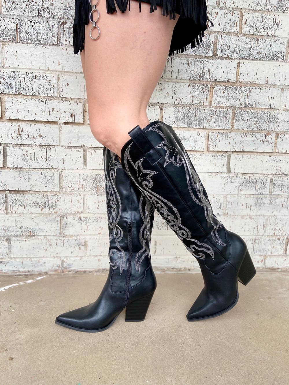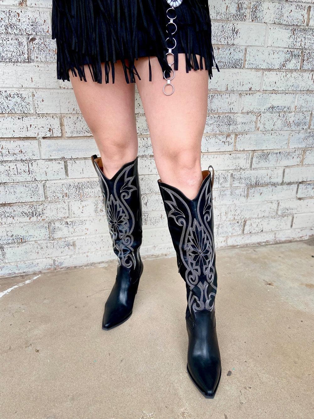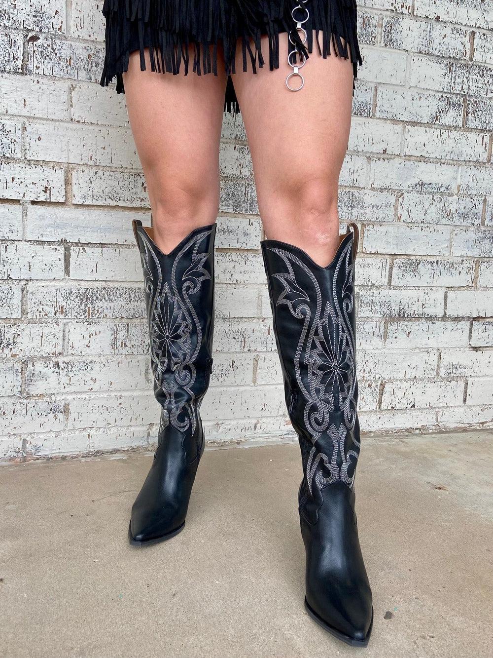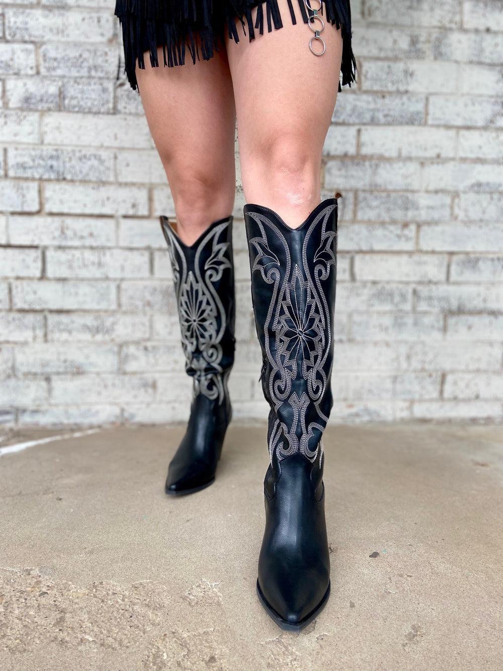 Let the lights dim and show off your style in these knee-high, embroidered stitched cowboy boots. The 3.5" heel and 15.75" in total height give you the perfect mix of comfort and class - now all you need is somewhere to dance the night away!