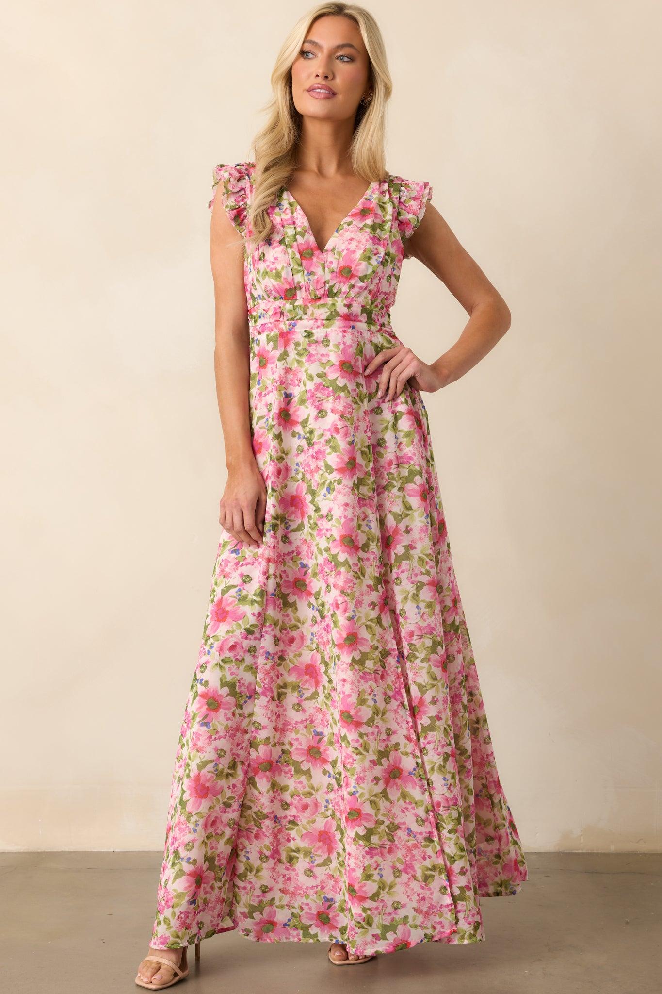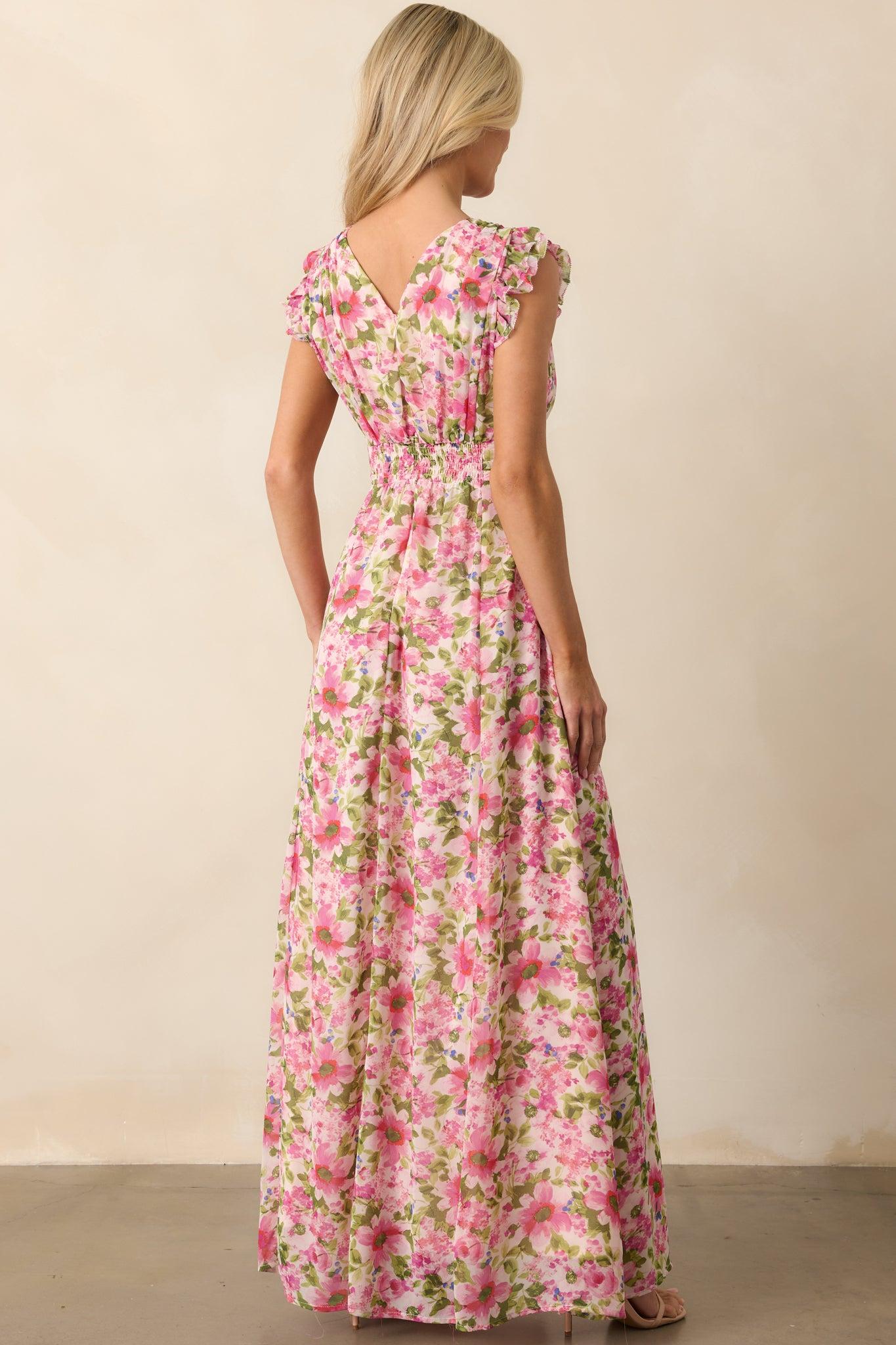 The Dancing In The Sun Pink Floral Sleeveless Maxi Dress is a joyful choice for embracing the happiness of life's carefree moments. It's perfect for those times when you want to feel lively and radiant, with a sense of freedom that makes every day feel like a celebration. This pink dress features a multicolor floral tulle overlay, light pink lining, pleated waist & bust detailing, a smocked back waist panel, small flutter shoulders, and a hidden back zipper. 100% Polyester Lining: 100% Polyester Hand Wash Cold Manufactured in China Designed in The USA Model is Wearing a Size Small