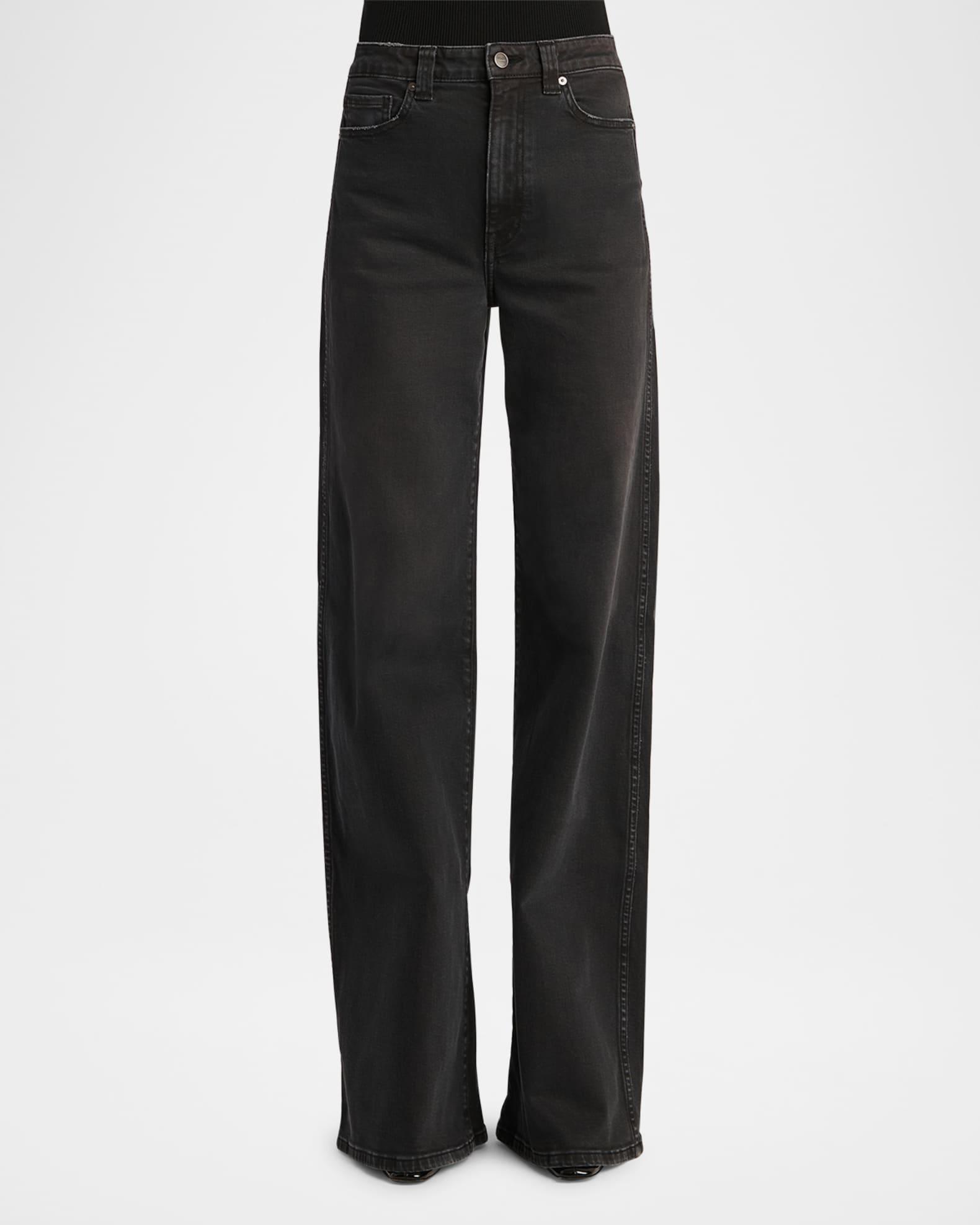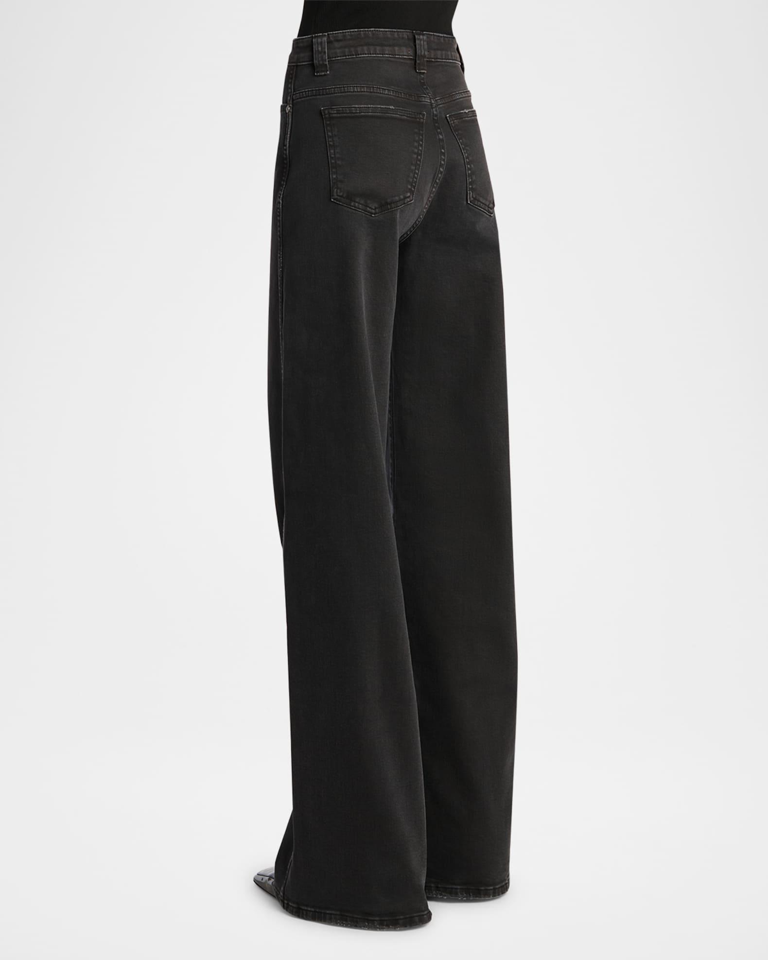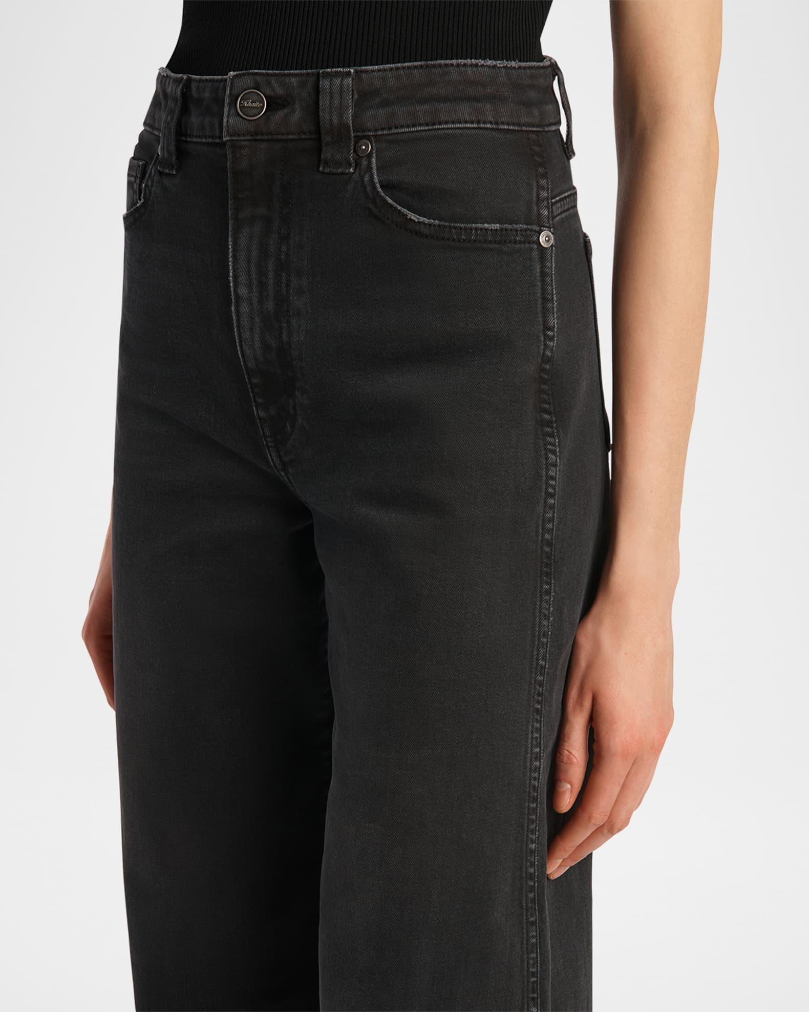 Khaite "Dane" wide-leg jeans in black denim High rise Five-pocket style Baggy fit Full length Button/zip fly; belt loops Cotton/polyurethane Made in USA