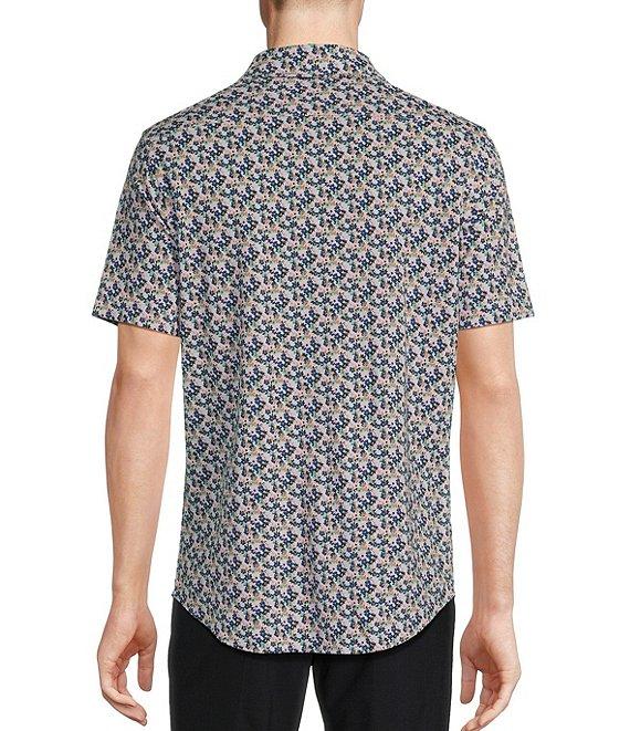 Daniel Cremieux Signature Label Floral Printed Jersey Jacquard Short Sleeve Coatfront Shirt