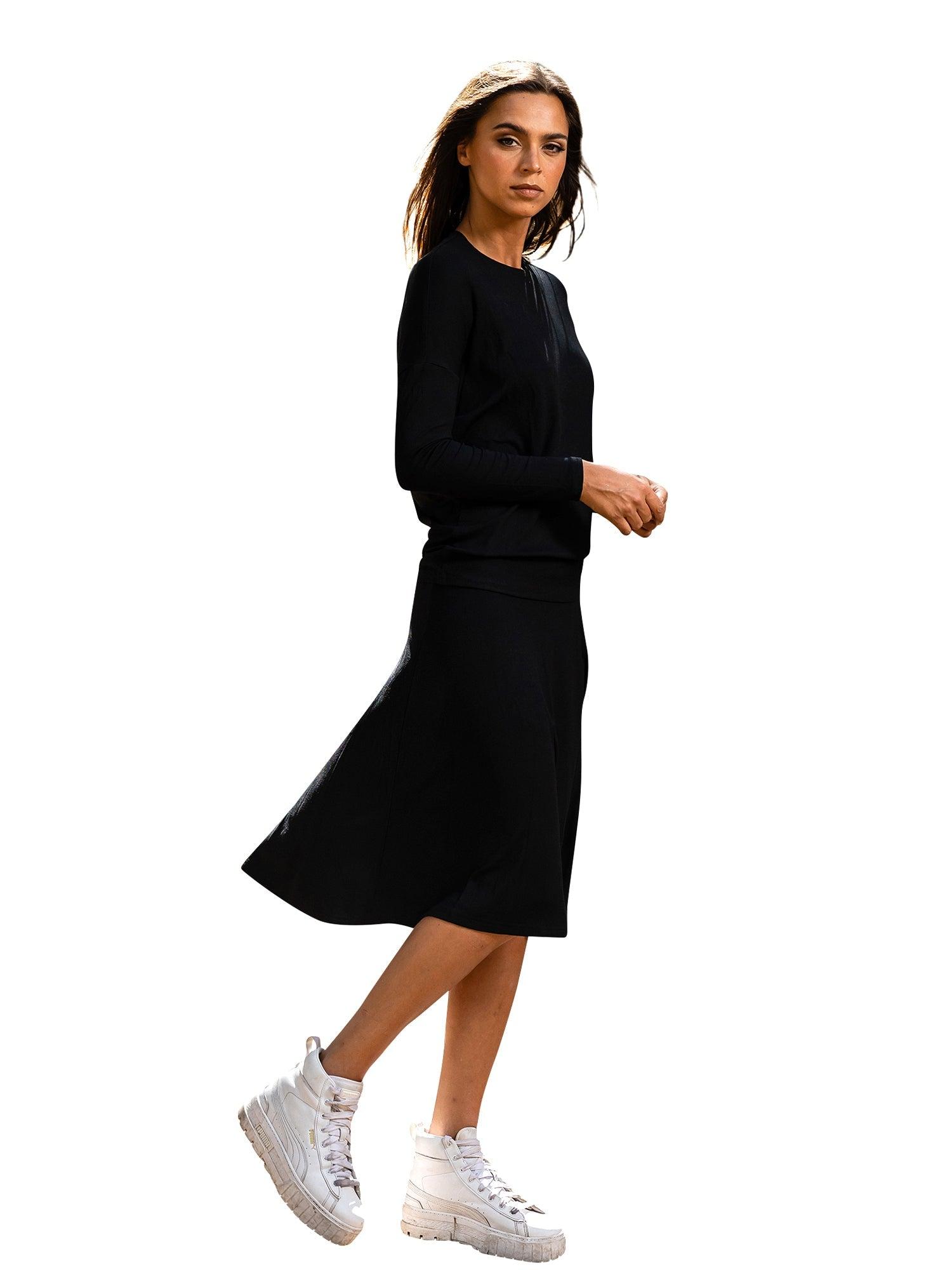 So soft and luxurious, our fine-ribbed velour pencil skirt feels like loungewear but it is so easy to dress up! Featuring a smooth drawstring waist, this silky velour skirt will take you from errands to a night out in no time!