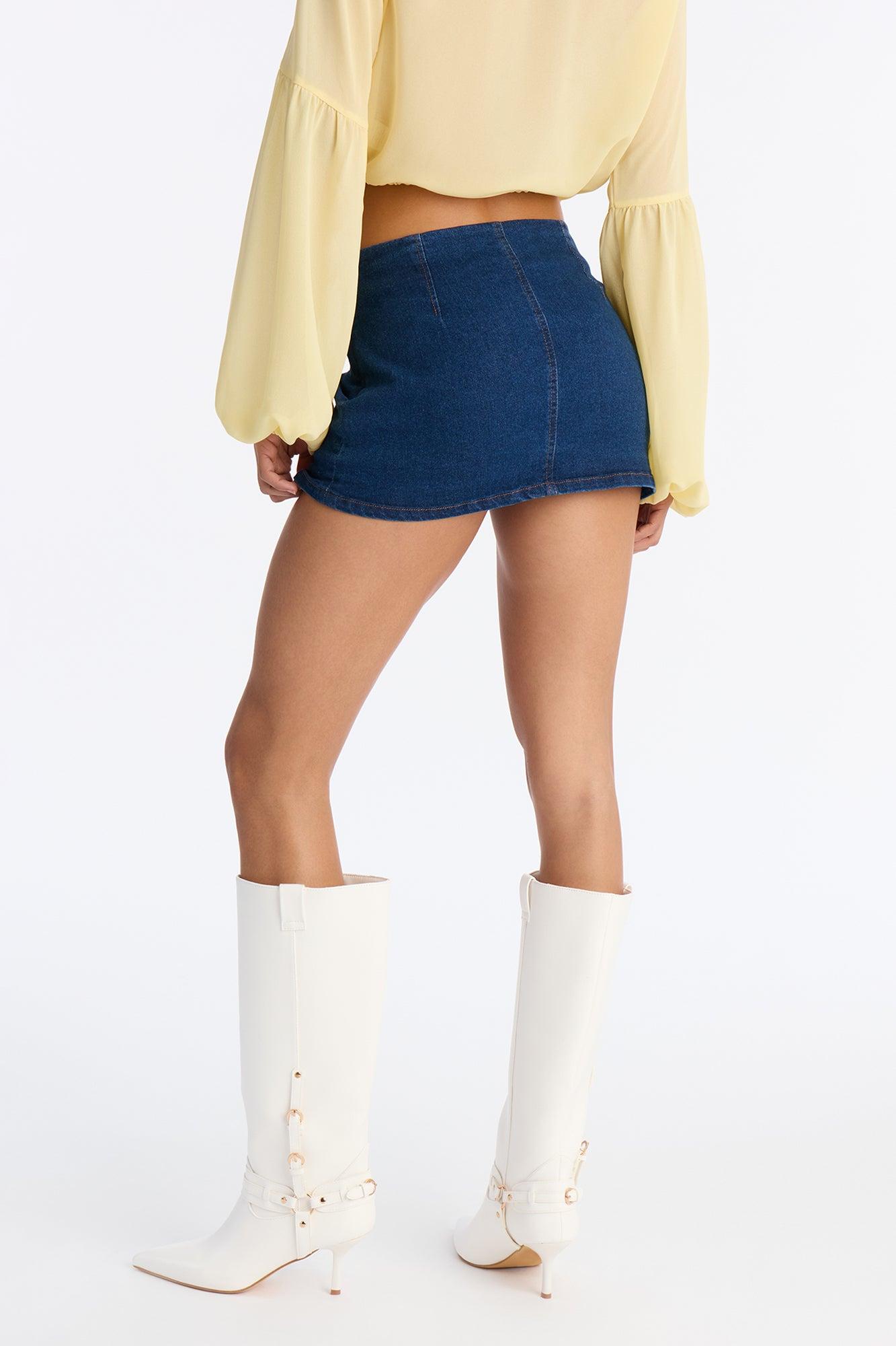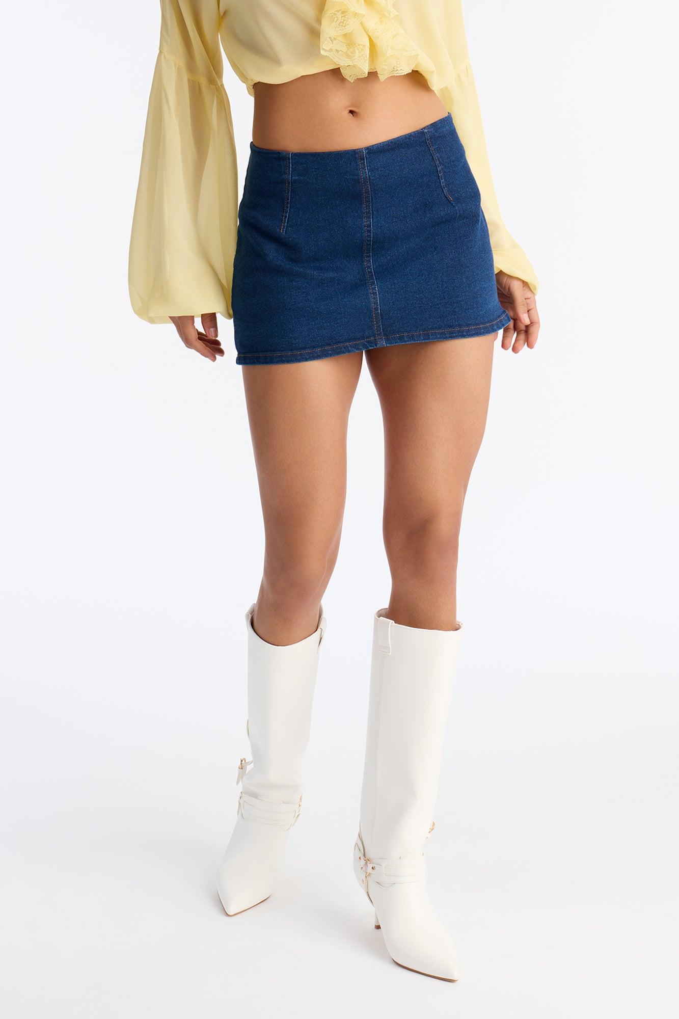 Available In Light Wash And Rinse Blue Wash. Skort Zipper Closure Low Rise Hidden Short Lining Denim Stretch 11" Length Disclaimer: Due the To The Specialized Dye Process, Loose Dye Can Stain On Contact. Do Not Wash with Other Garments Self: 75% Cotton 23% Polyester 2% Spandex Lining: 100% Polyester Imported