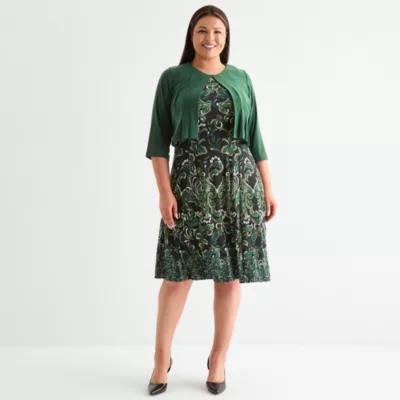 Danny & Nicole Womens Plus Floral Midi Jacket Dress
