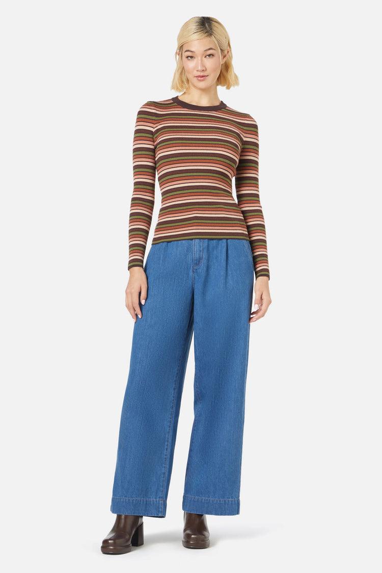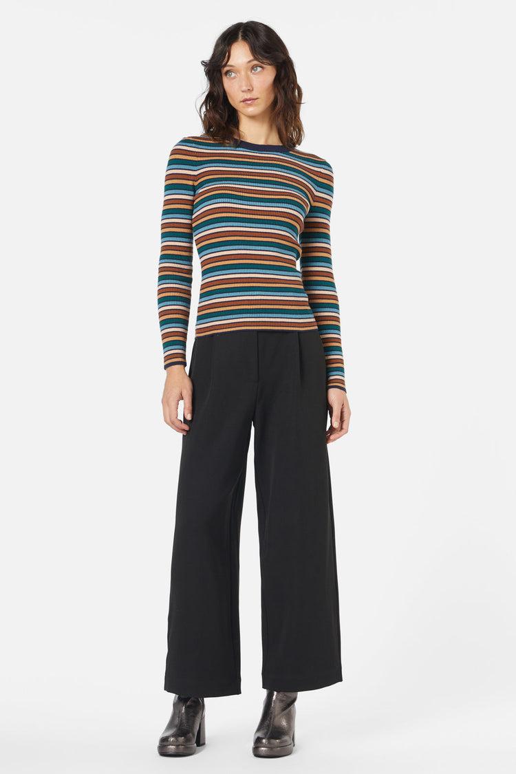 Darcy Stripe Knit Top by Princess HighwayChannel retro charm with the Darcy Stripe Knit Top, a vintage-inspired essential that brings timeless style to your wardrobe. This long sleeve top features a sweet rib detail around the neckline and a classic stripe design, offering a fitted silhouette that hugs the body. Made with a generous stretch, it effortlessly pulls back into shape, ensuring a comfortable, flattering fit every time you wear it.Crafted from a soft blend of viscose, nylon, and polyester yarn, this top feels luxurious against the skin. Available in rich navy and chocolate tones, the Darcy Stripe Knit Top is perfect for layering or wearing solo for a chic, retro look.Fabric & Care:50% Viscose, 28% Nylon, 22% PBTGentle cold hand washWash inside out with like colorsDo not wring, spin, bleach, or tumble dryPull into shape and dry flat in shadeCool iron on reverse if requiredDo not dry clean