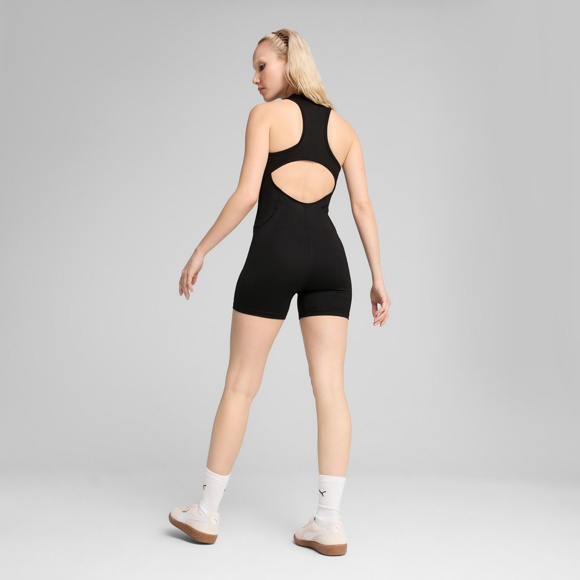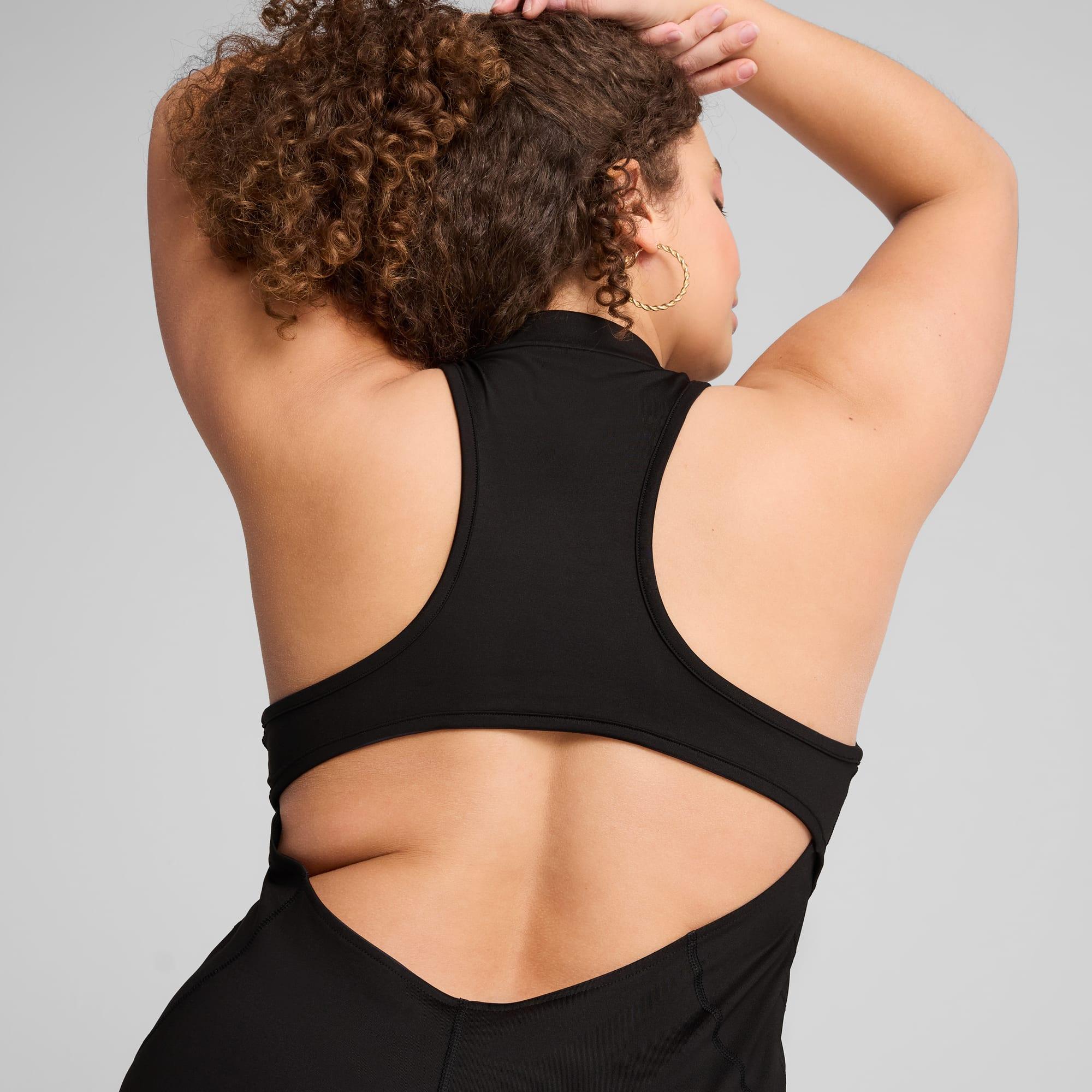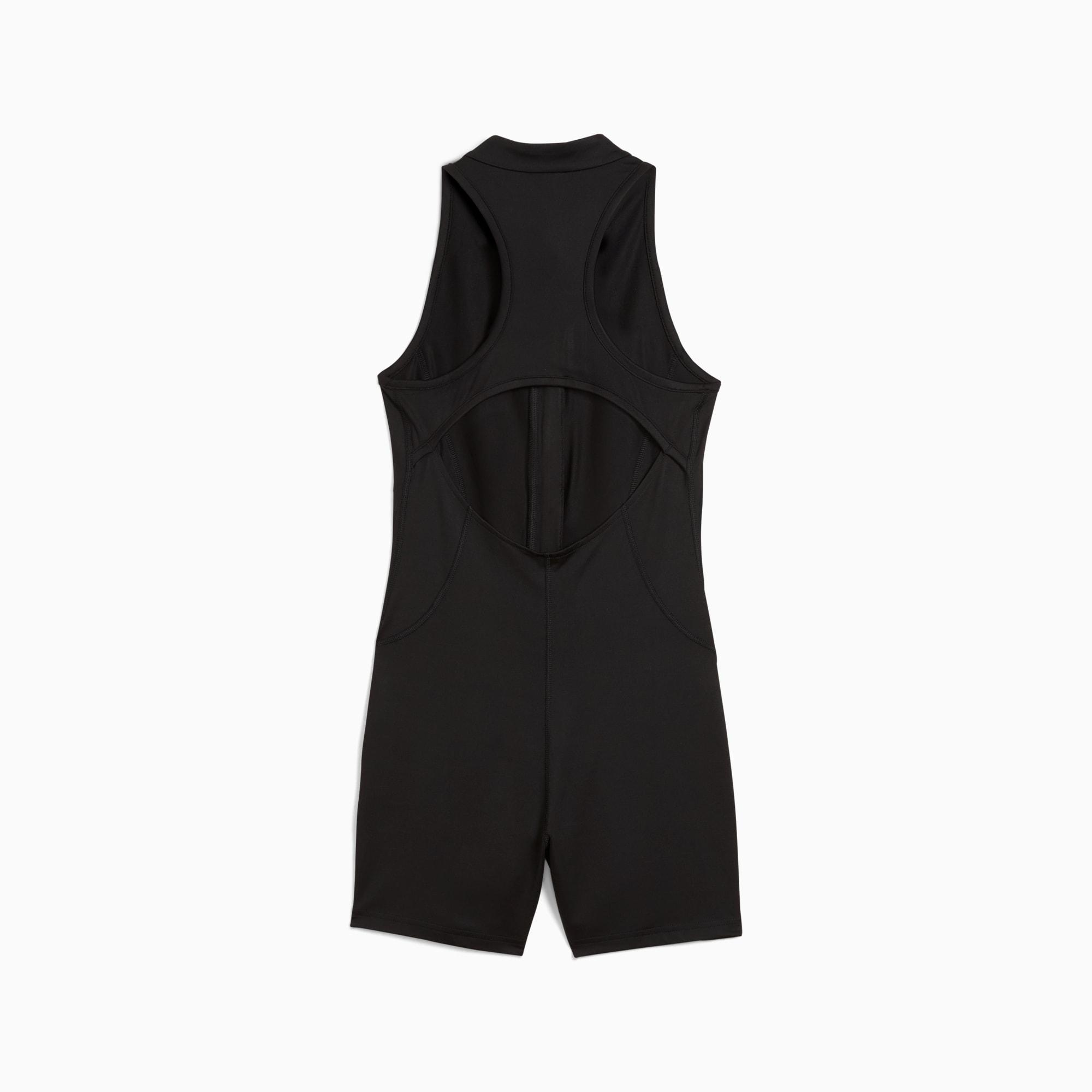 Unleash your bold side with this dynamic onesie. Featuring tonal cutlines, a front zipper, and contouring cut-outs, it's designed to make a statement. The mock neck and glossy PUMA logo add the perfect finishing touches. Dare to be different.Made with at least 50% recycled materialsTight fitSingle jersey fabricUltra Short lengthSleevelessPUMA branding details