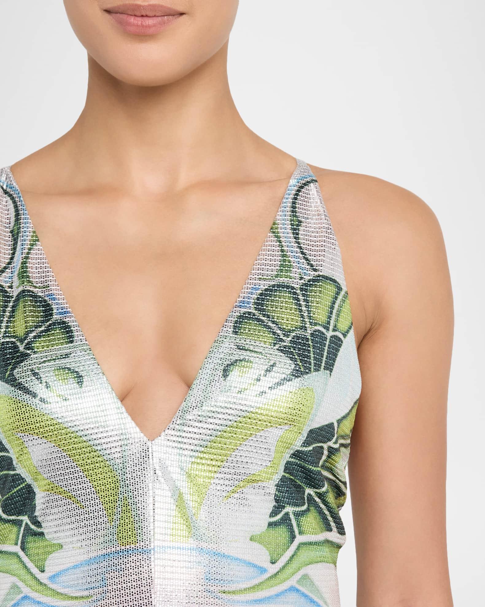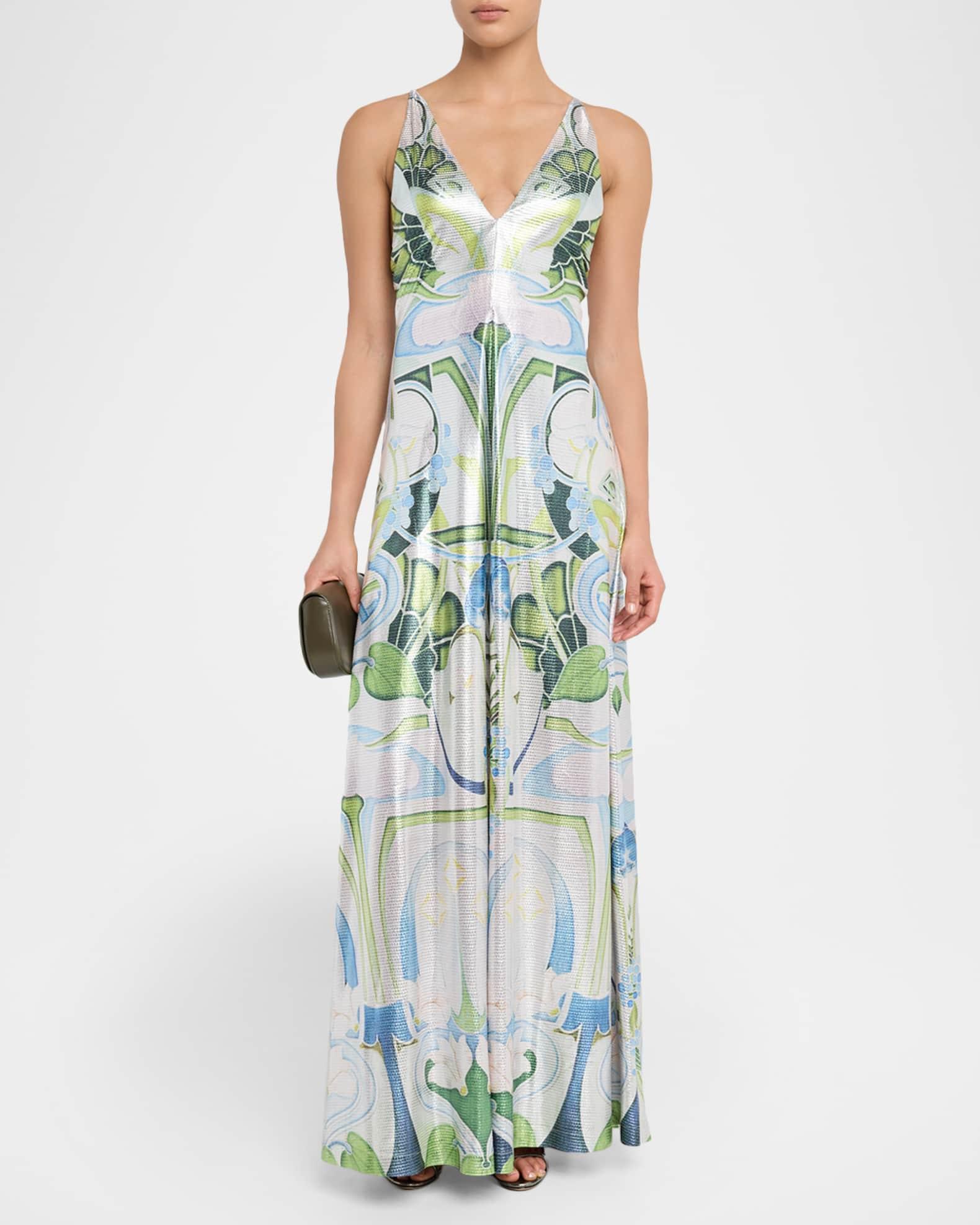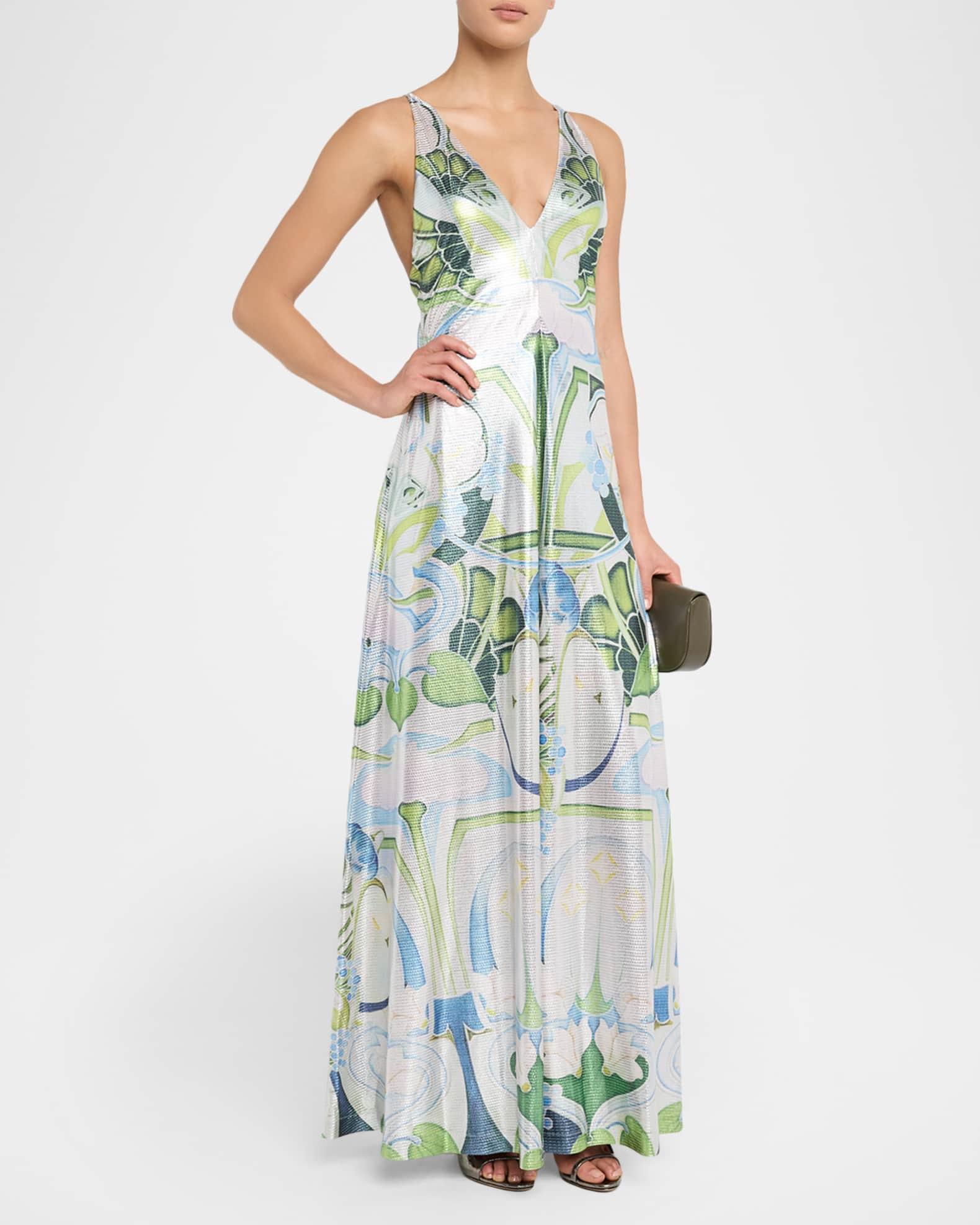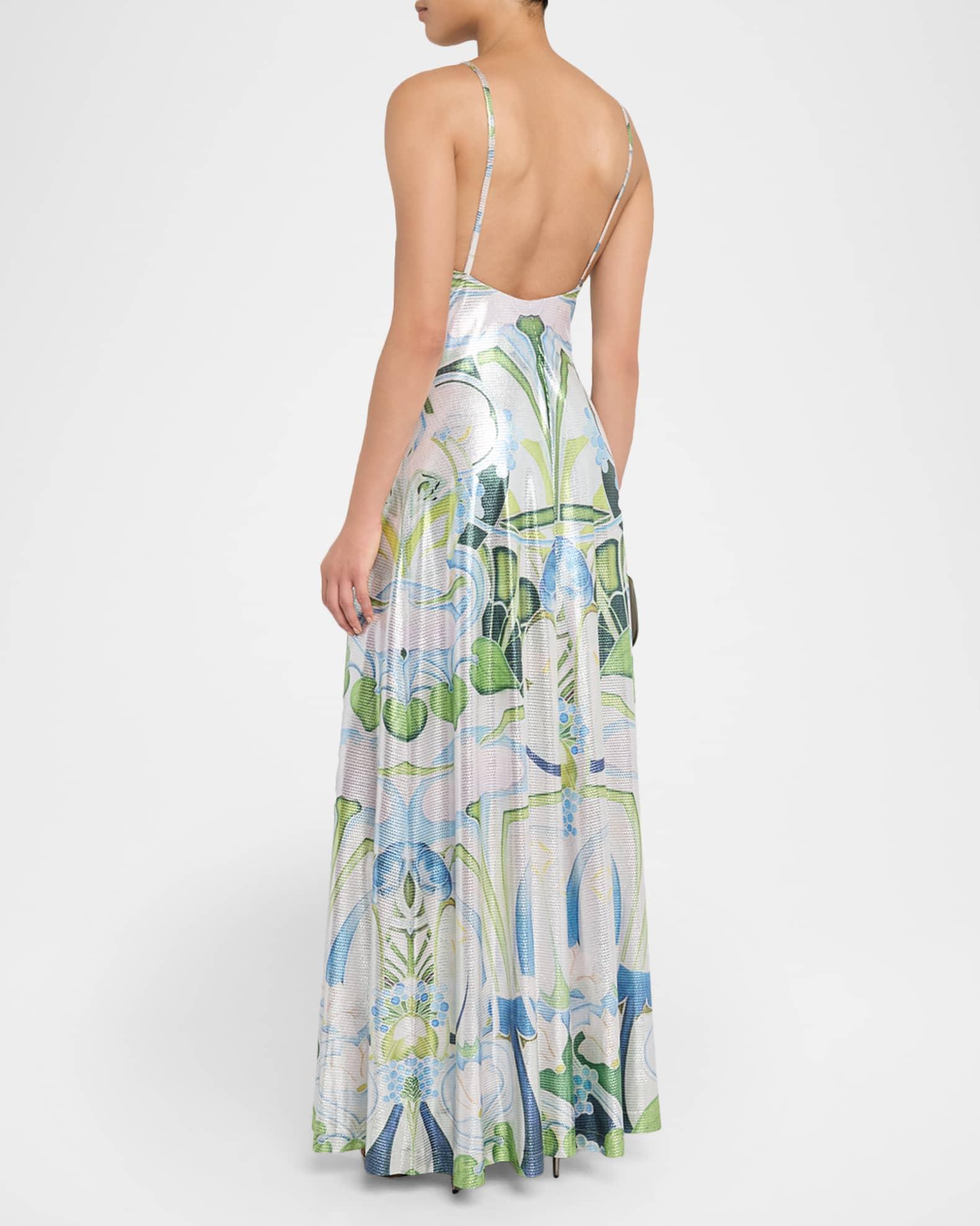 Daria Plunging Garden-Print Slip Gown