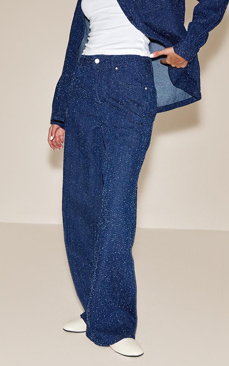 Introduce a fresh take on denim with the dark blue boucle denim high waist jeans. Made from boucle denim in a deep blue tone, these jeans feature a flattering high waist and a straight leg design. Pair with the matching top and ballet flats for a chic two piece set look.Length approx 76cm/30inch (Based on sample size US 4)Model wears size UK 8/ EU 36/ AUS 8/ US 4Model Height - 5ft 7inchp]:!mb-4inch>Brand: PrettyLittleThingCategory: DenimProduct type: Wide Leg JeansColor: Dark BlueMaterial: Rigid DenimOccasion: Day