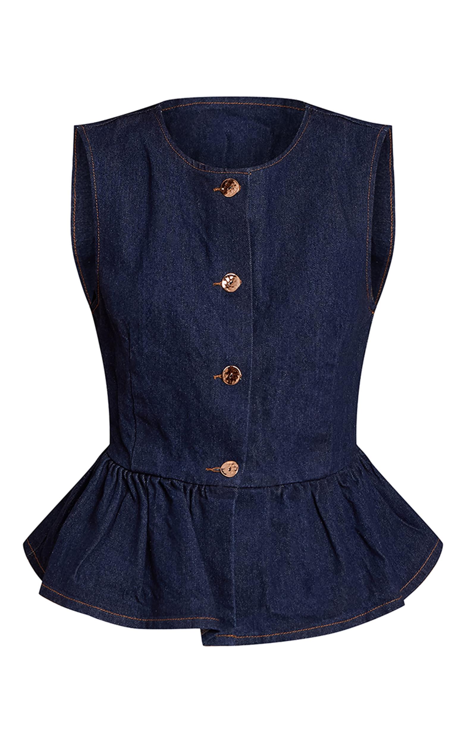 The dark blue button detail peplum denim top brings a feminine edge to denim. Featuring a structured peplum hem, button-through fastening, and tailored fit, it highlights the waist while keeping the look versatile. Style with indigo jeans for a denim-on-denim look, or pair with a maxi skirt and sandals for casual chic.Length approx 48.5cm/19inch (Based on sample size US 4)Model wears size UK 8/ EU 36/ AUS 8/ US 4Model Height - 5ft 7inchp]:!mb-4inch>Brand: PrettyLittleThingCategory: DenimProduct type: Denim TopColor: Dark BlueMaterial: Rigid DenimSleeves: ShortOccasion: Day