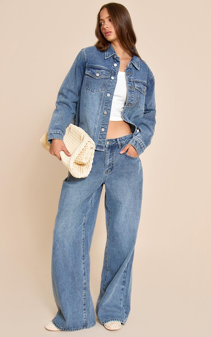 Upgrade your casual rotation with the dark blue mid rise slouchy wide leg jeans. Cut from a dark blue denim fabric, these jeans feature a mid-rise fit with a slouchy wide leg for relaxed styling. Pair with a fitted top and sneakers for a balanced silhouette.Length approx 76cm/30inch (Based on sample size US 4)Model wears size UK 8/ EU 36/ AUS 8/ US 4Model Height - 5ft 9inchp]:!mb-4inch>Brand: PrettyLittleThingCategory: DenimProduct type: Wide Leg JeansColor: Dark BlueMaterial: Rigid DenimNeckline: ShirtSleeves: LongOccasion: Day