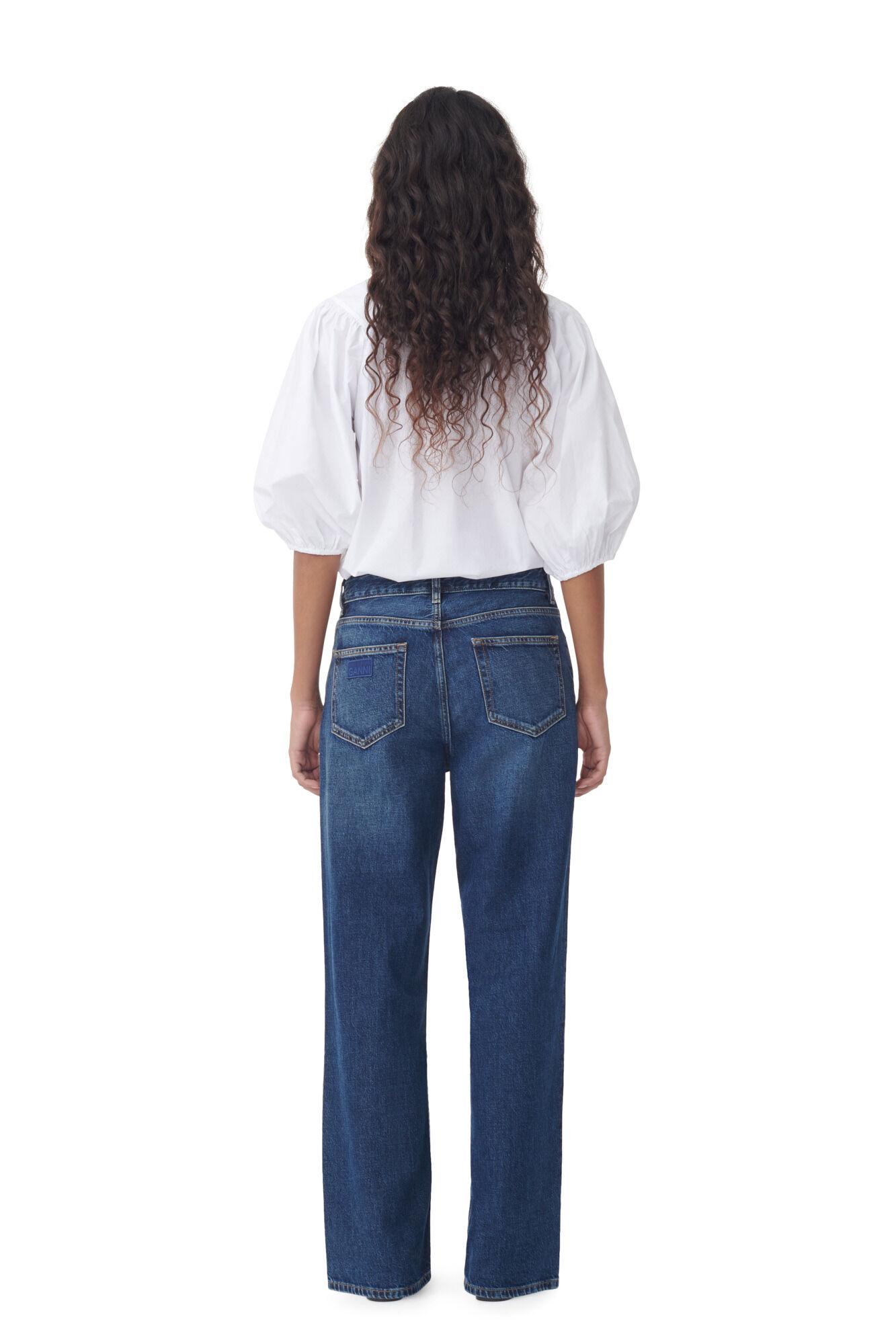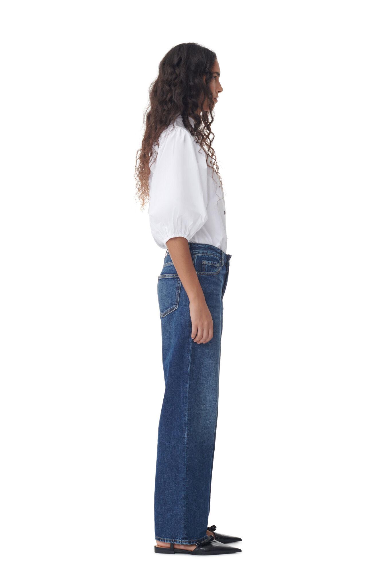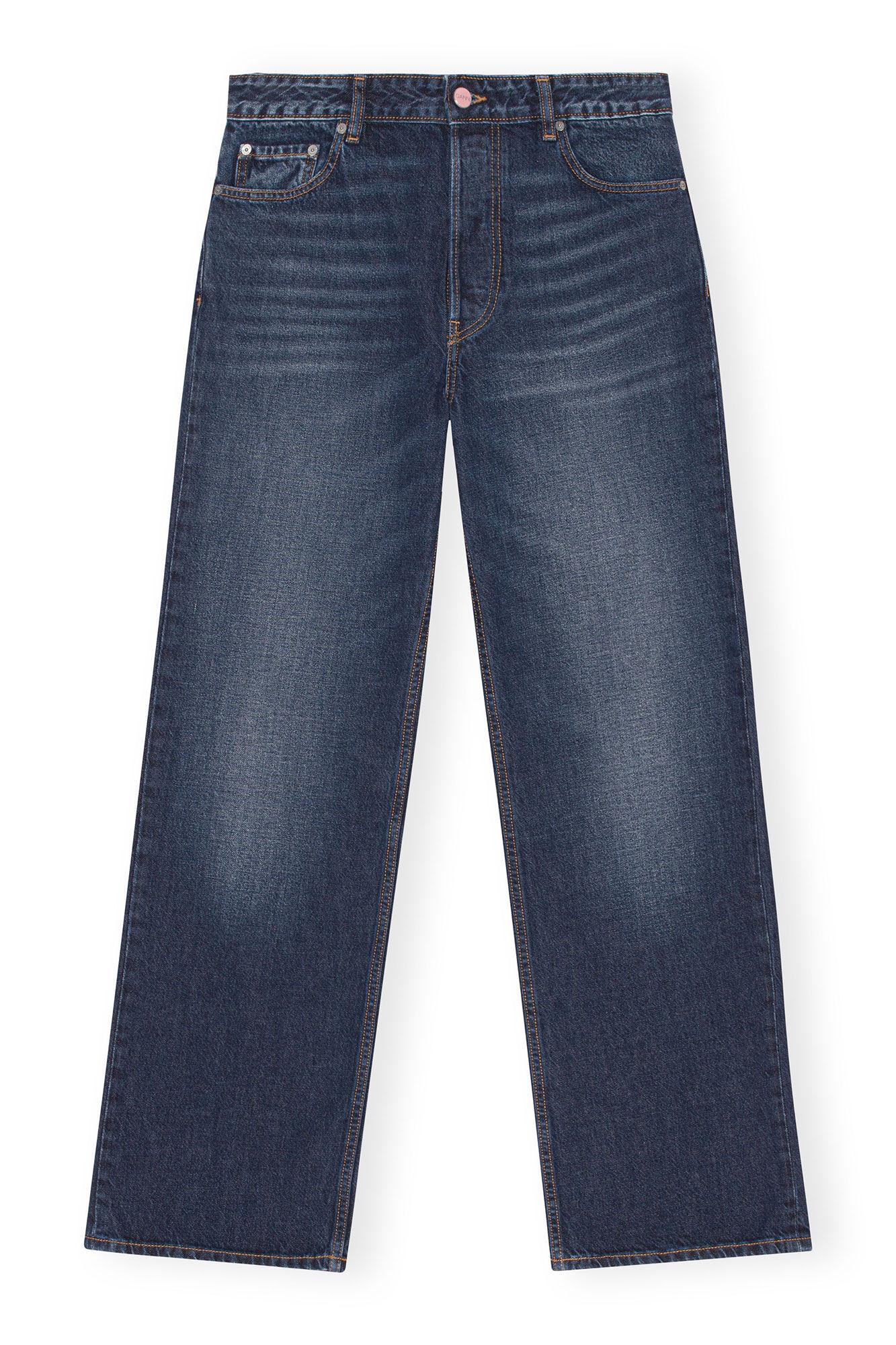 This style is part of the GANNI Denim Core Collection. These Dark Blue Vintage Izey Jeans are made from organic cotton. The jeans are designed for a relaxed fit with straight, loose legs.