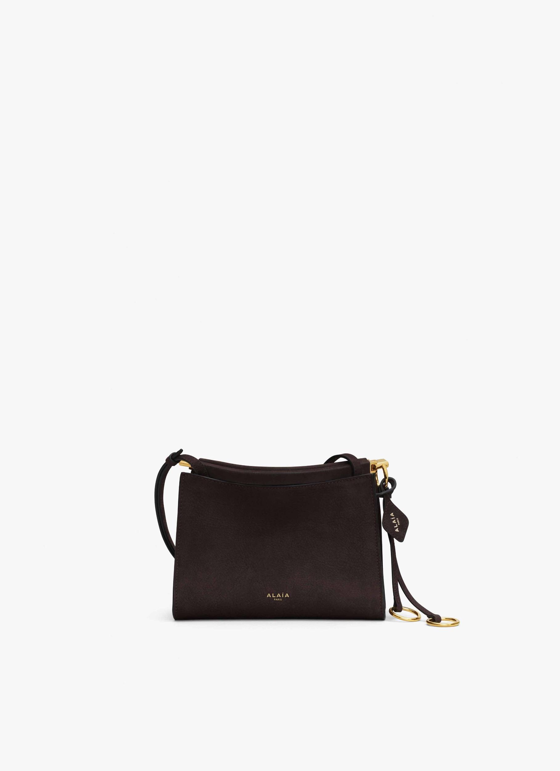 Curved square shape bag that hugs the body Discreet pocket with hinge opening system wrapped with leather, completed by one large front gusset with magnetic closure Signature folding detail on the bottom of the bag Decorative ties with metallic rings Shoulder or cross body carry thanks to an adjustable handle Soft feel nubuck calfskin leather Dimensions (cm) : L 20 X H 15 X D 9. Made in Italy