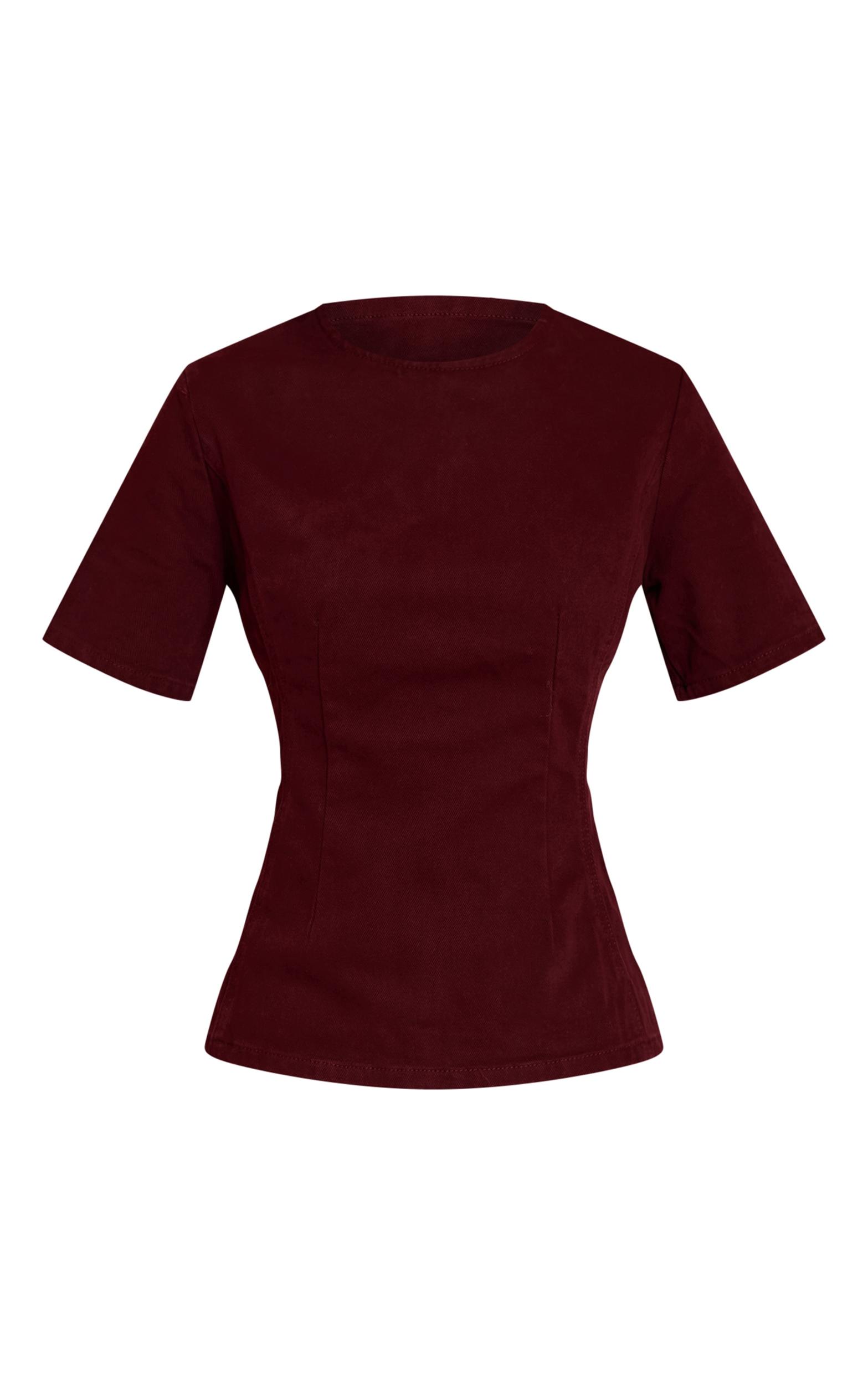 Bring modern denim energy to your wardrobe with the dark burgundy cinched waist peplum denim top. Crafted from structured denim in a deep burgundy hue, this top features a cinched waist and flared peplum hem for a flattering silhouette. Team with matching denim pants for a coordinated statement look.Length approx 48.5cm/19inch (Based on sample size US 4)Model wears size UK 8/ EU 36/ AUS 8/ US 4Model Height - 5ft 9inchp]:!mb-4inch>Brand: PrettyLittleThingCategory: DenimProduct type: Denim TopColor: Deep BurgundyMaterial: Rigid DenimNeckline: Roll NeckSleeves: ShortOccasion: Day