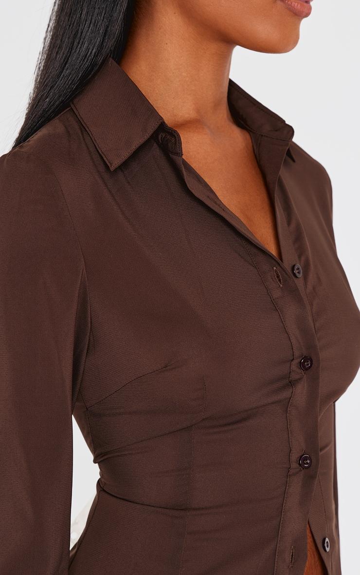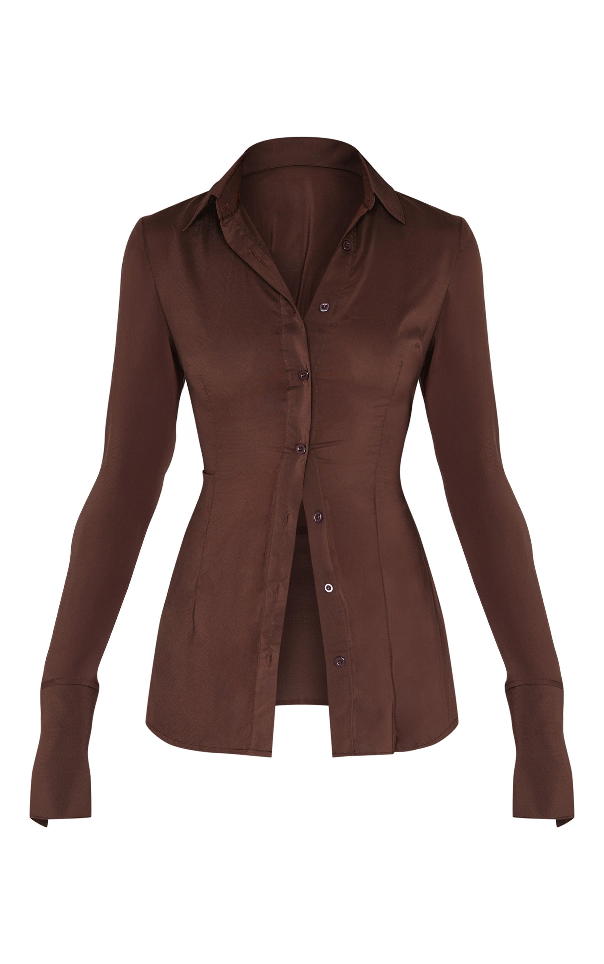 Keep it chic in this sark chocolate chiffon fitted shirt. Made from a dark chocolate chiffon material with a button through design and a fitted style, how can you resist? Team this fitted shirt with jeans and court heels for a look that is perfect for dressing up or down to suit your plans. Length approx 48cm/19inch (Based on a sample size UK 8) Model wears size UK 8/ EU 36/ AUS 8/ US 4Model Height - 5ft 8inchp]:!mb-0inch>Category: TopsProduct type: ShirtColor: Dark ChocolateMaterial: ChiffonDesign: PlainNeckline: ShirtSleeves: LongOccasion: Evening