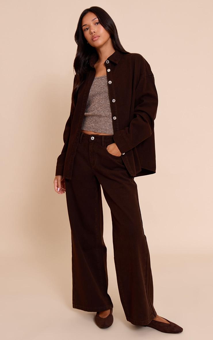 Introducing the dark chocolate oversized classic denim shirt. Brought to you in dark chocolate toned denim, this shirt has button fastenings, long sleeves and a collared neckline. Add the matching jeans and a basic vest for a look we're loving right now.Length approx 48.5cm/19inch (Based on sample size US 4)Model wears size UK 8/ EU 36/ AUS 8/ US 4Model Height - 5ft 9inchp]:!mb-4inch>Brand: PrettyLittleThingCategory: DenimProduct type: Denim ShirtColor: Dark ChocolateMaterial: Rigid DenimOccasion: Day