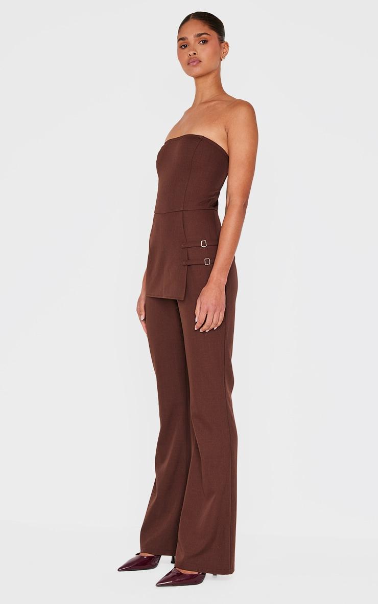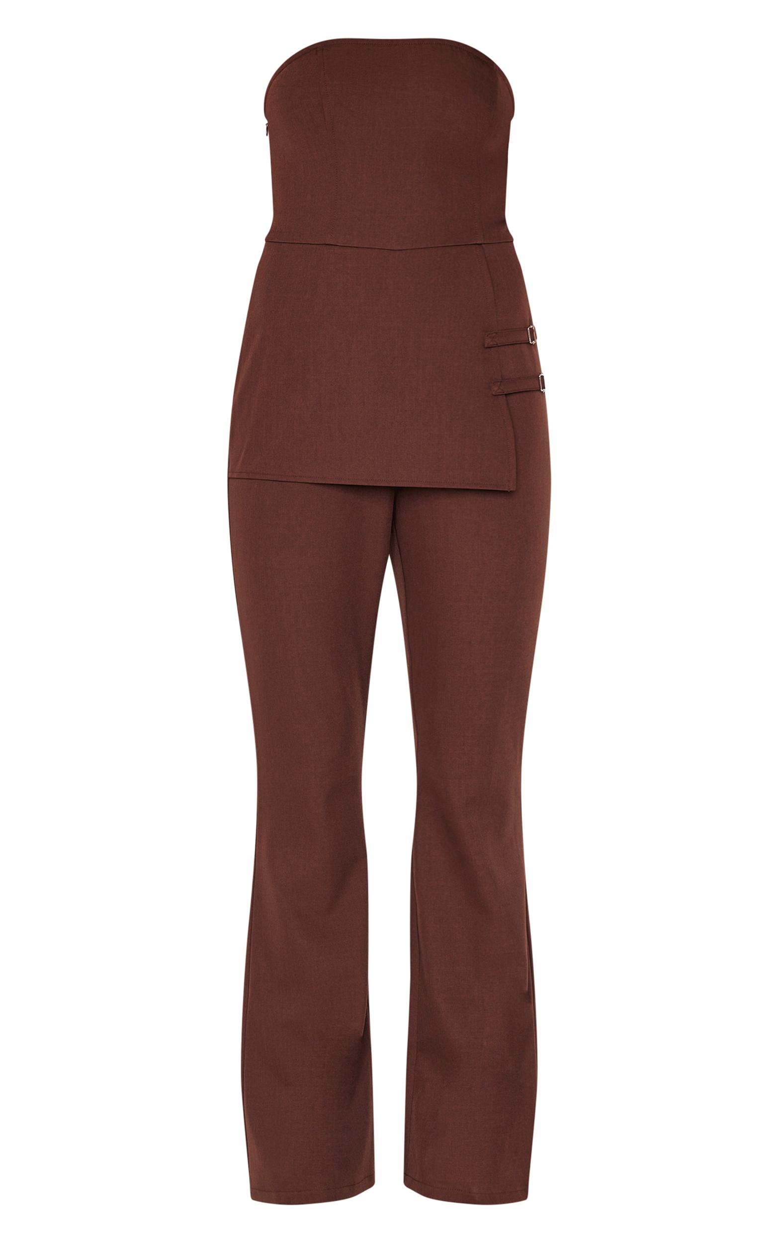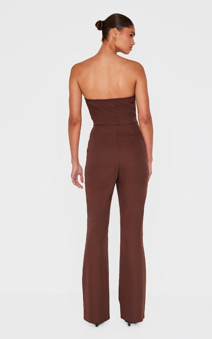 Deciding what to wear just got easier with this dark chocolate structured woven bandeau belt detail straight leg jumpsuit. Brought to you in a seasonal dark chocolate tone, with a luxe structured woven material and flattering belt detail, this is all the new you need. Style with a pair of court heels and simple accessories for a chic finish. Length approx 145cm/57inch (Based on a sample size UK 8) Model wears size UK 8/ EU 36/ AUS 8/ US 4Model Height - 5ft 9inchp]:!mb-0inch>Category: Jumpsuits & PlaysuitsProduct type: Tailored JumpsuitColor: Dark ChocolateMaterial: Woven CrepeDesign: PlainNeckline: BandeauSleeves: BandeauOccasion: Evening