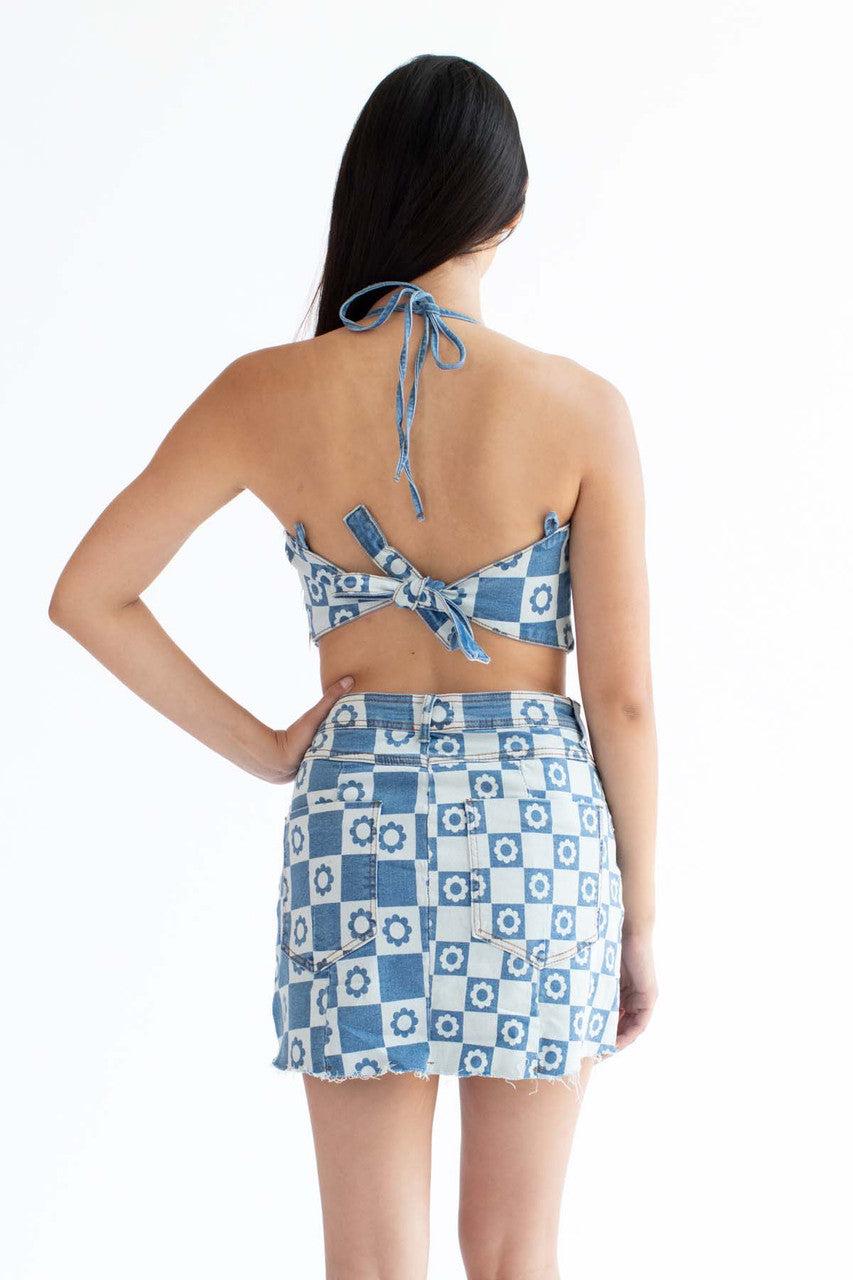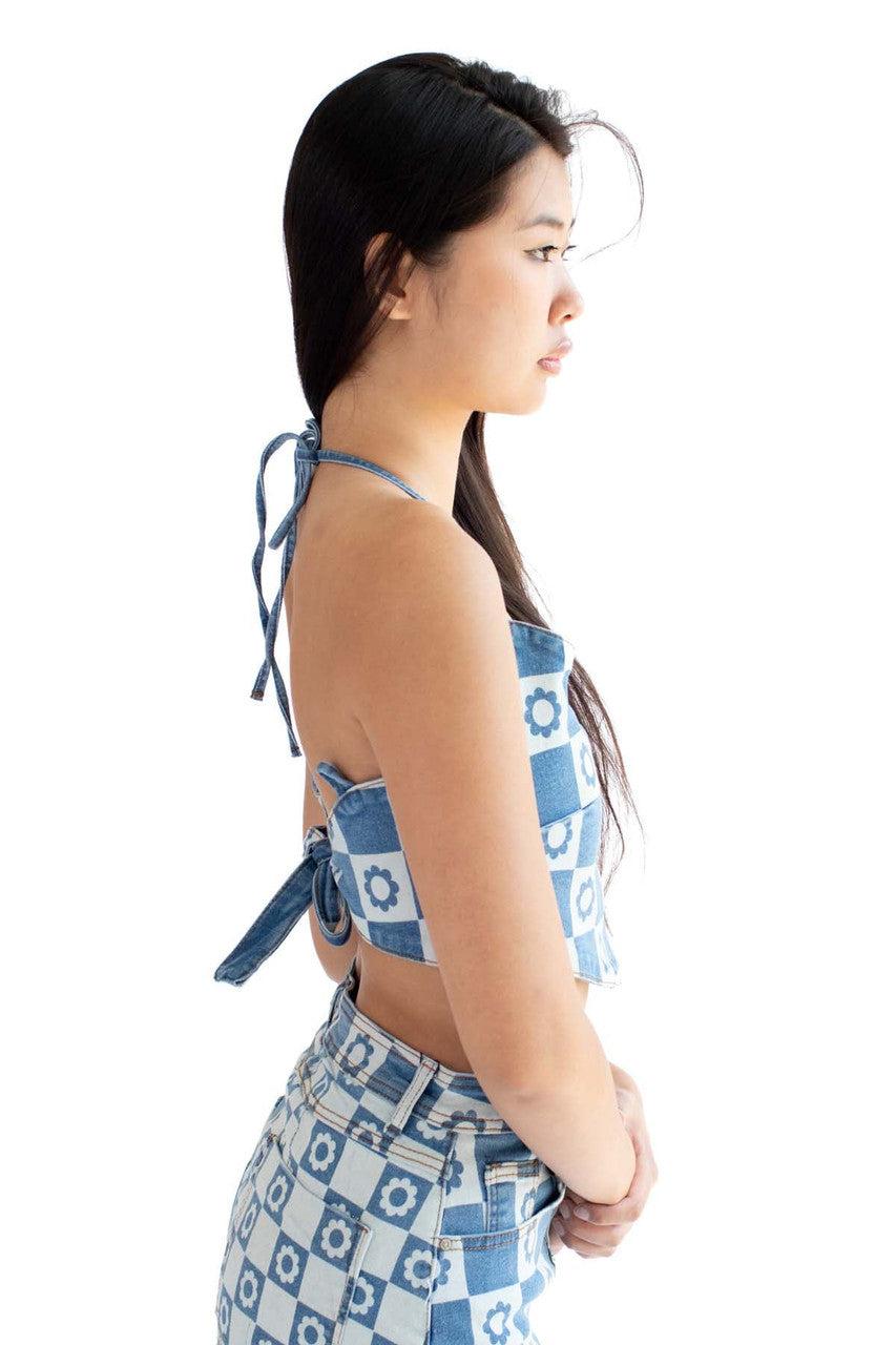 Dark Daisy Denim Halter Top