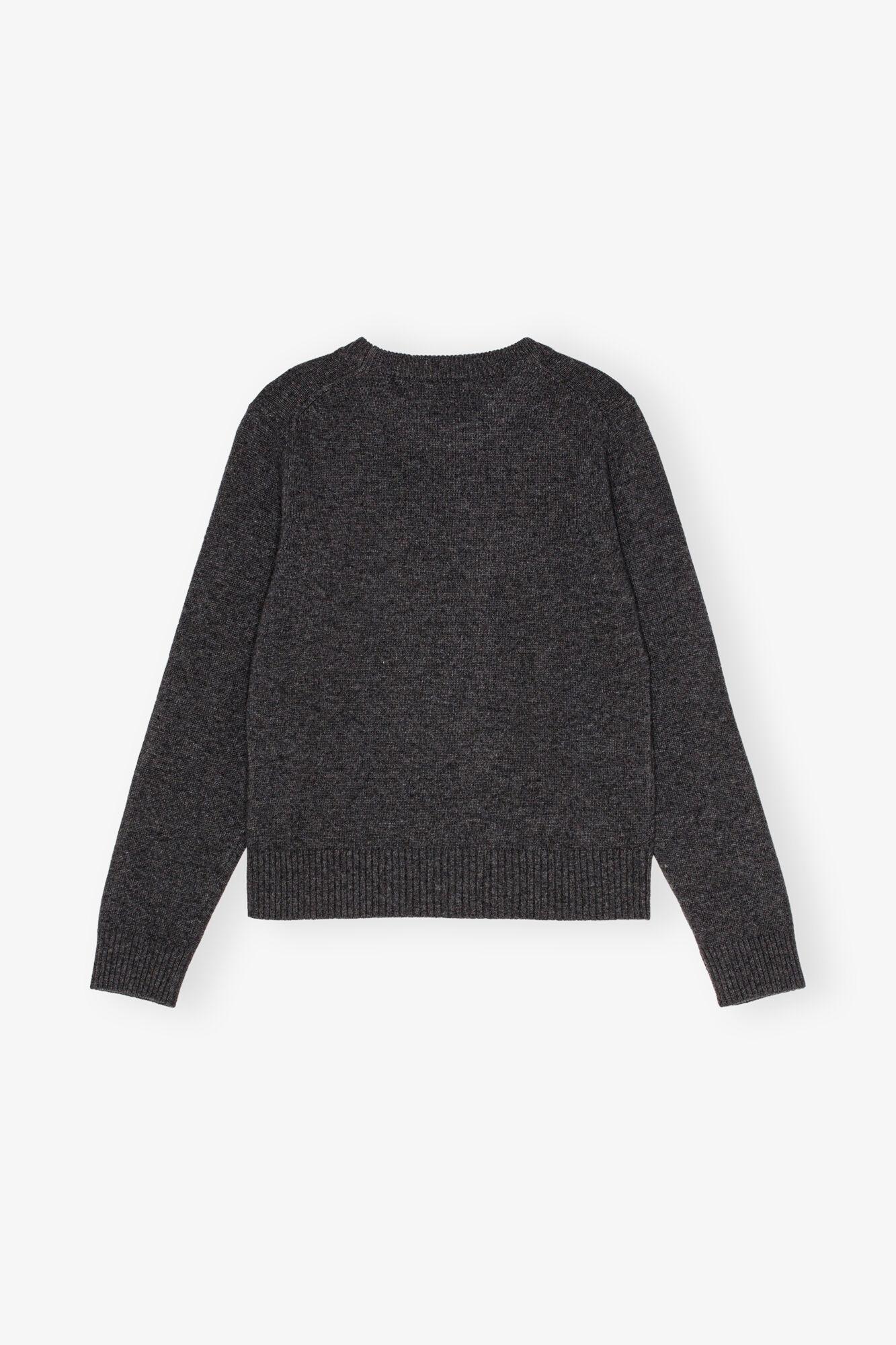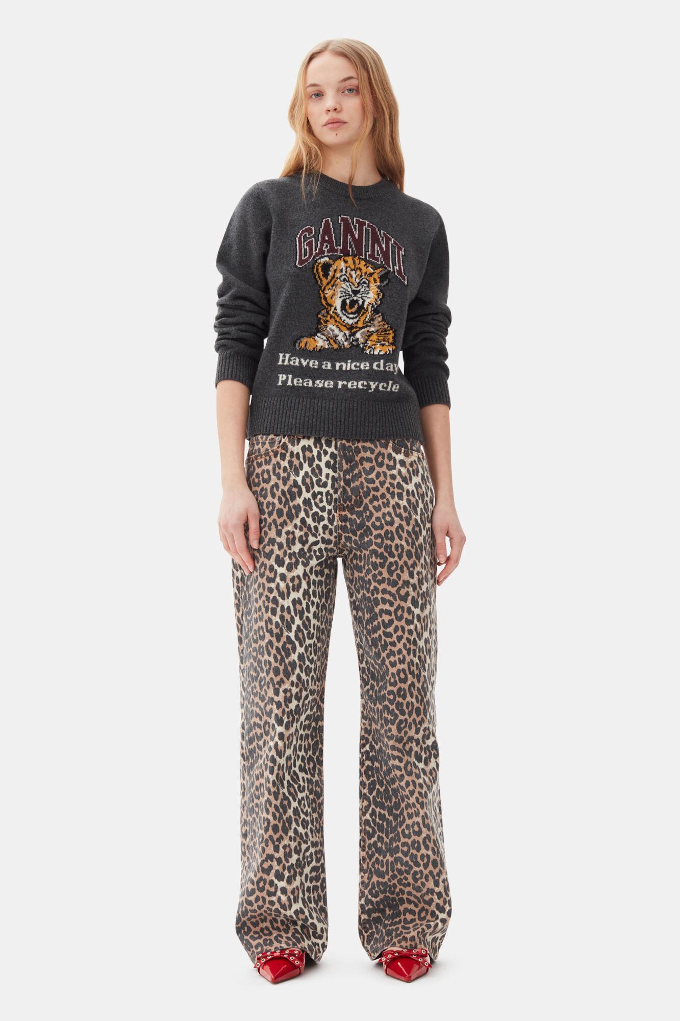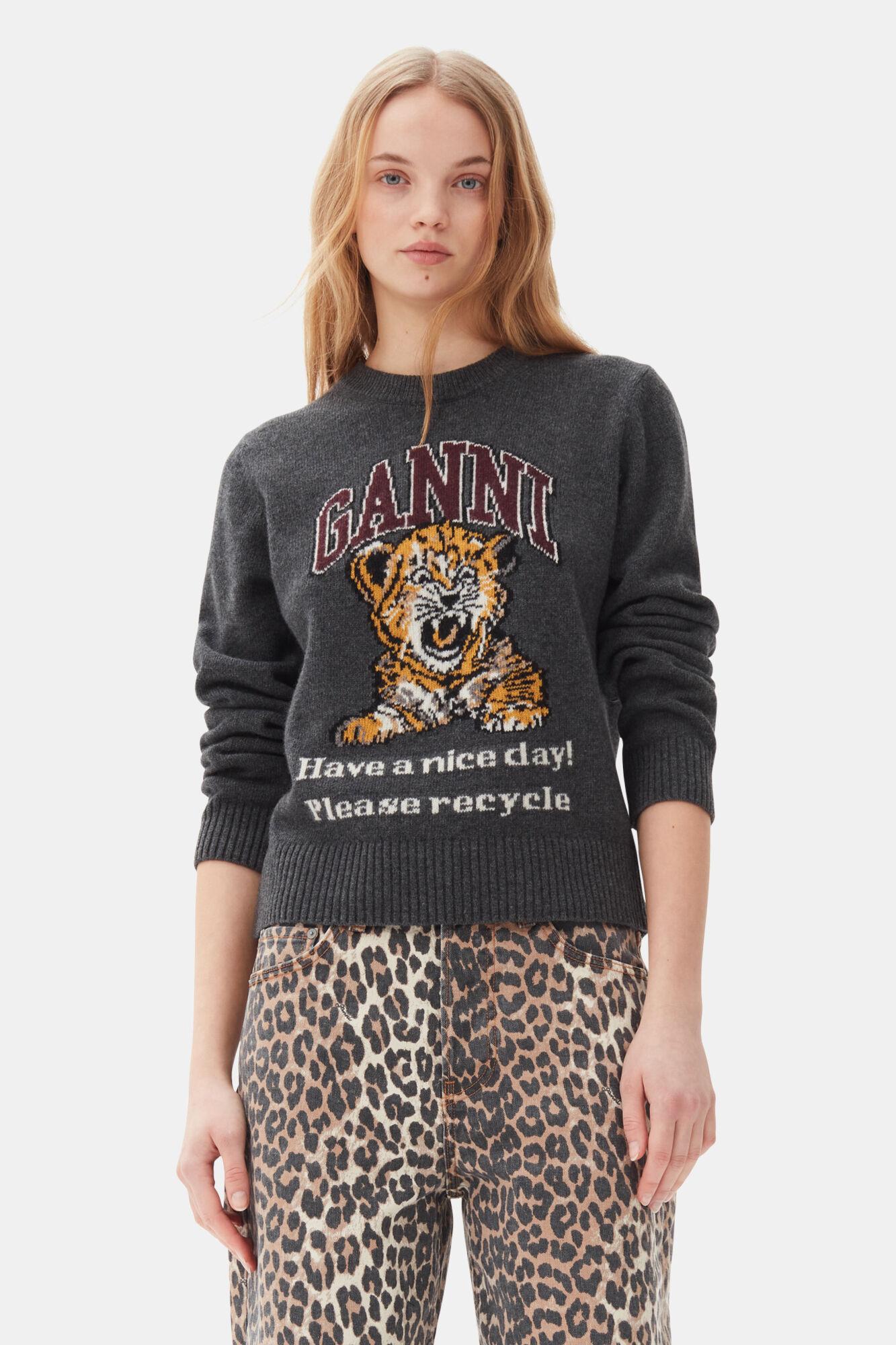This Dark Grey Graphic Tiger Sweater features a round neckline, long sleeves, ribbed edges and a graphic GANNI motif.