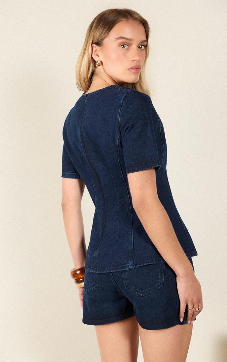Add polish to your casual wardrobe with this dark indigo cinched waist peplum denim top. Featuring a tailored waist and flared peplum hem, style this piece with the matching shorts, chunky bangles, gold stud fastening earrings and strappy kitten heels for a flattering and feminine silhouette.Length approx 48.5cm/19inch (Based on sample size US 4)Model wears size UK 8/ EU 36/ AUS 8/ US 4Model Height - 5ft 7inchp]:!mb-4inch>Brand: PrettyLittleThingCategory: DenimProduct type: Denim TopColor: Dark IndigoMaterial: Rigid DenimNeckline: CrewSleeves: ShortOccasion: Day