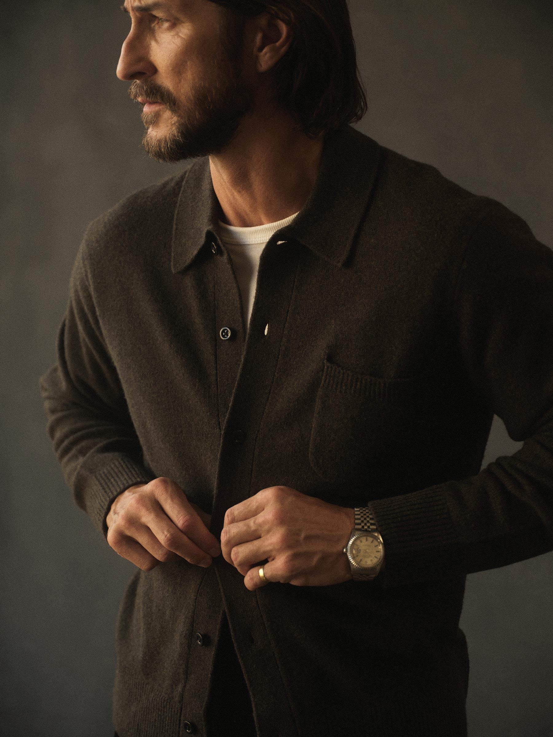 Dark Loden Heritage Wool Collared Cardigan