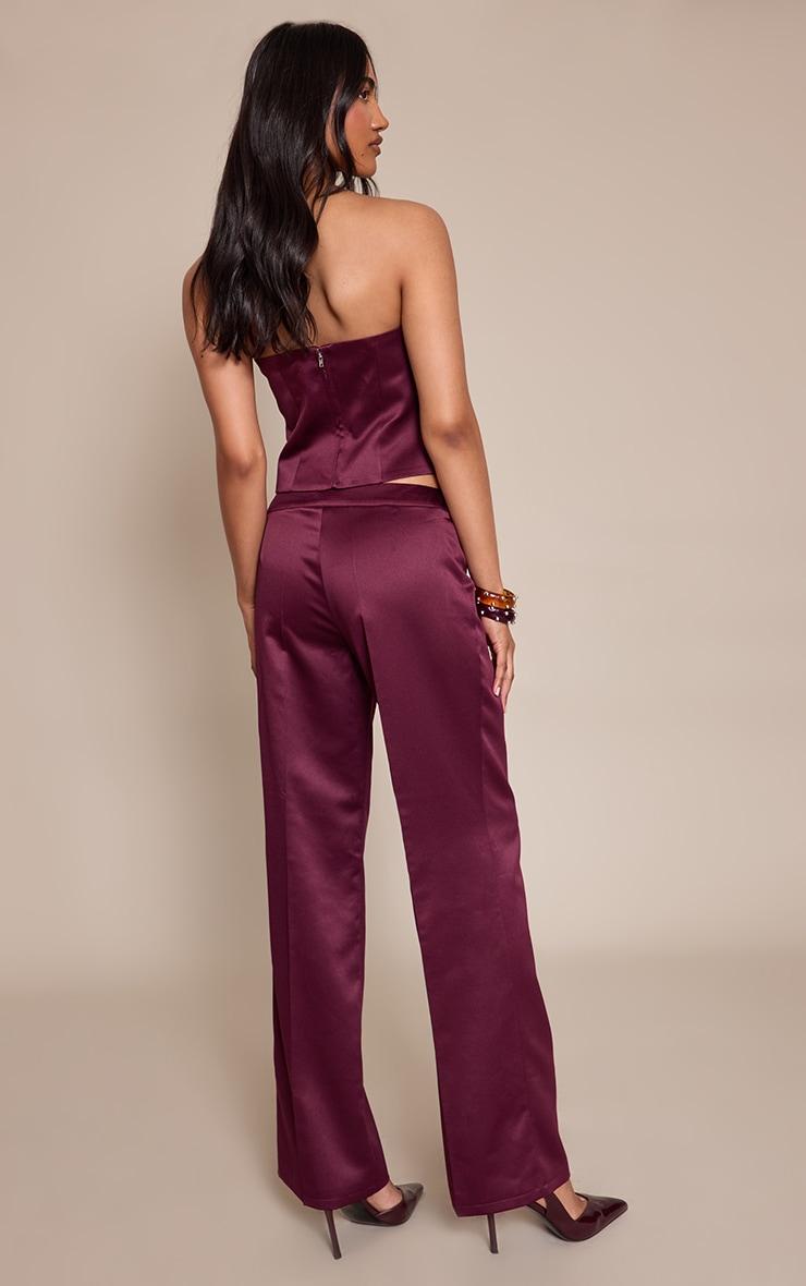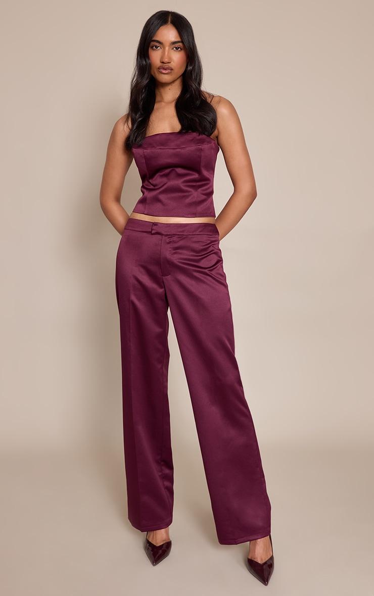 Lean into luxe minimalism with the dark wine satin low rise straight leg pants. Smooth satin sits lightly on the hip, falling to a clean straight leg that lengthens the silhouette. Pair with the matching bandeau and fine gold earrings for a refined two piece set.Length approx 76cm/30inch (Based on sample size US 4)Model wears size UK 8/ EU 36/ AUS 8/ US 4Model Height - 5ft 9inchp]:!mb-4inch>Brand: PrettyLittleThingCategory: Co-ordsProduct type: StraightColor: Dark WineMaterial: SatinOccasion: Evening
