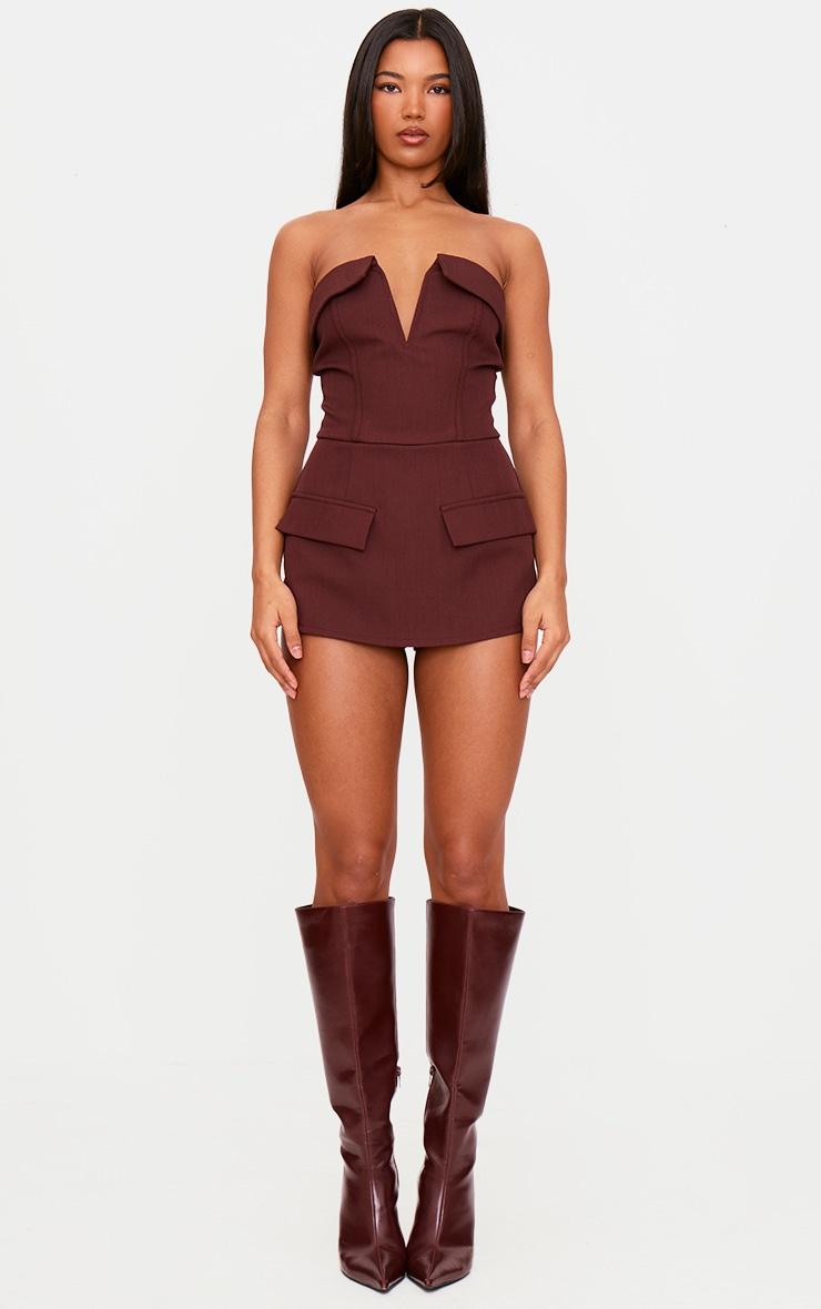 Enter the weekend in style with this dark wine structured woven corset detail bandeau romper. Made from a dark wine hue structured woven material with a bandeau neckline and corset detailing, we are obsessed. Style this bandeau romper with knee length heeled boots and simple gold accessories for a look they won't be able to take their eyes off . Length approx 58cm/23inch (Based on a sample size UK 8) Model wears size UK 8/ EU 36/ AUS 8/ US 4Model Height - 5ft 6inchp]:!mb-0inch>Category: Jumpsuits & PlaysuitsProduct type: Tailored PlaysuitColor: Dark WineMaterial: Woven CrepeDesign: PlainNeckline: BandeauSleeves: BandeauOccasion: Evening