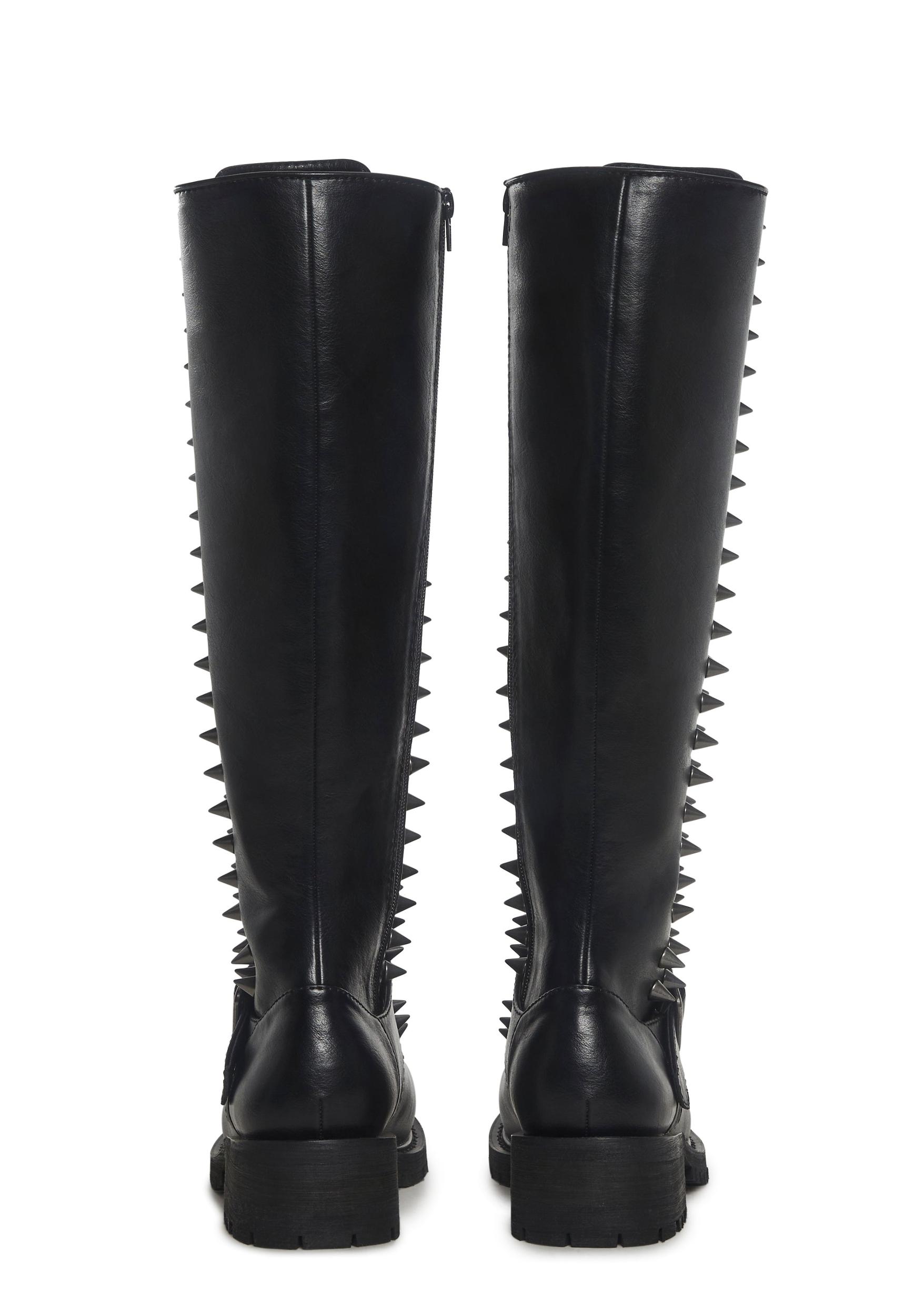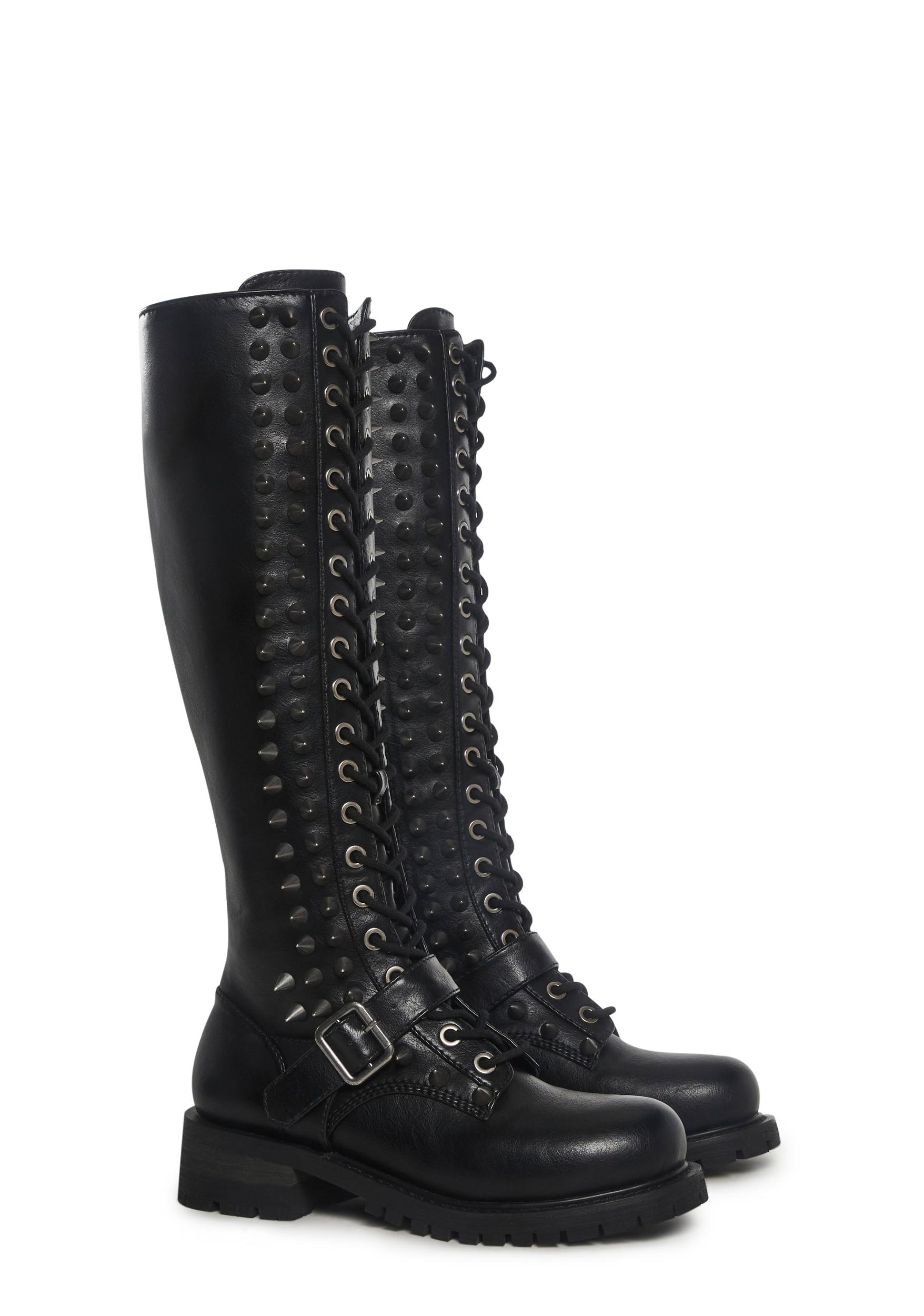 Darker Wavs Spiked Lace Up Knee High Boots - Black