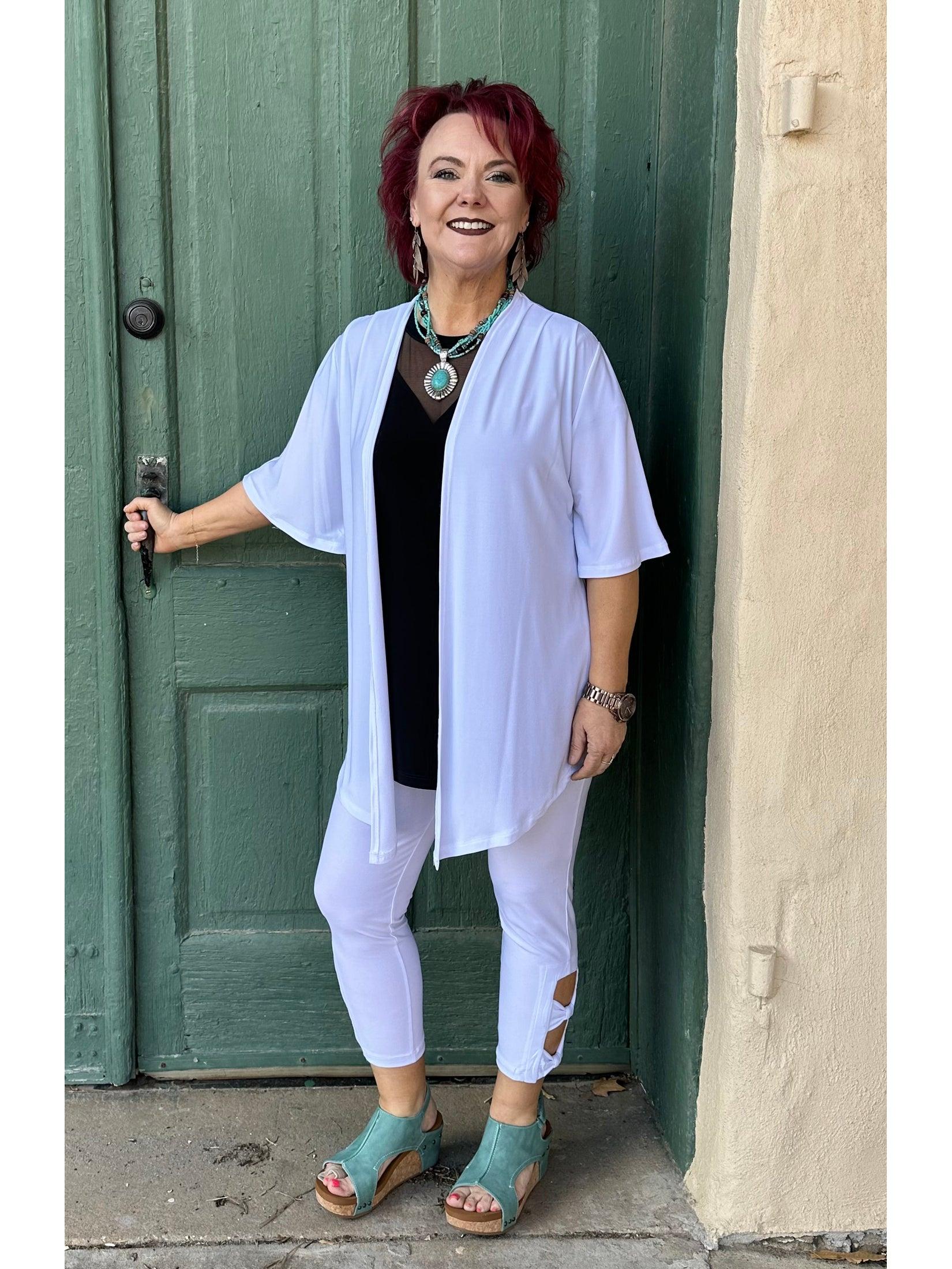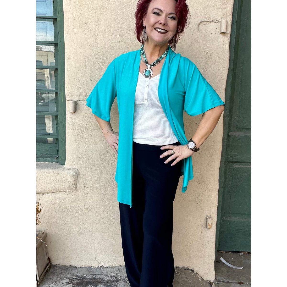 Wrap yourself in comfortable, wrinkle-resistant luxury! Darlene Half Sleeve Lightweight Jacket/Kimono by Artex Fashions features an a-line swing cut that offers perfect arm coverage without sacrificing style or comfort. Now you can look (and feel) fabulous, any day of the week!