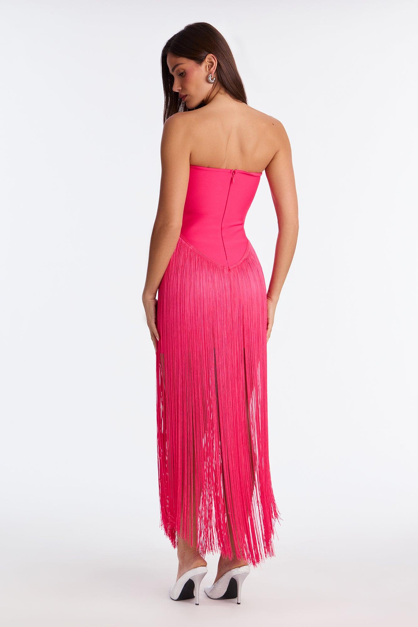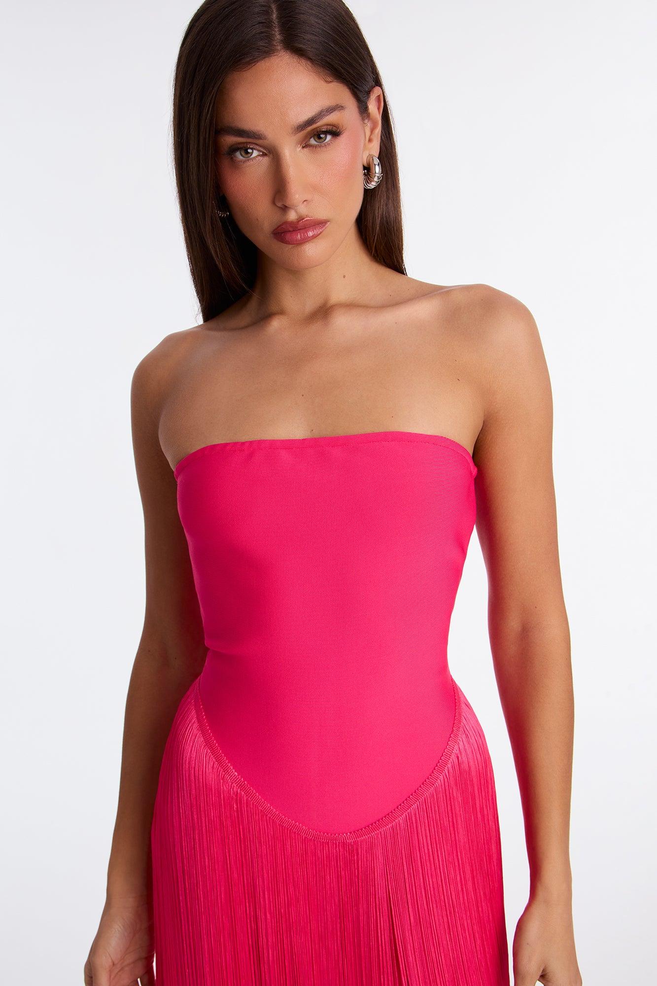 Darling Fringe Trim Bandage Mini Dress - Hot Pink Female