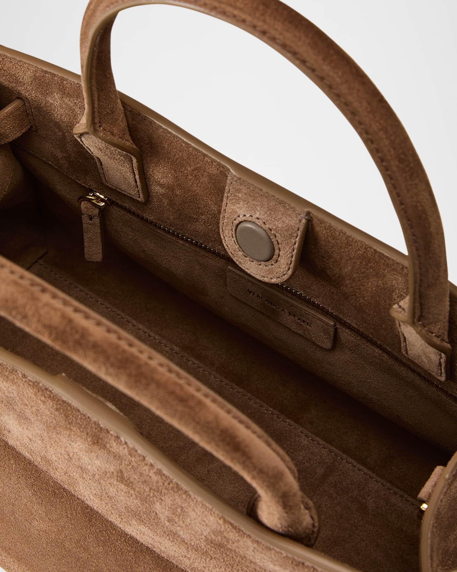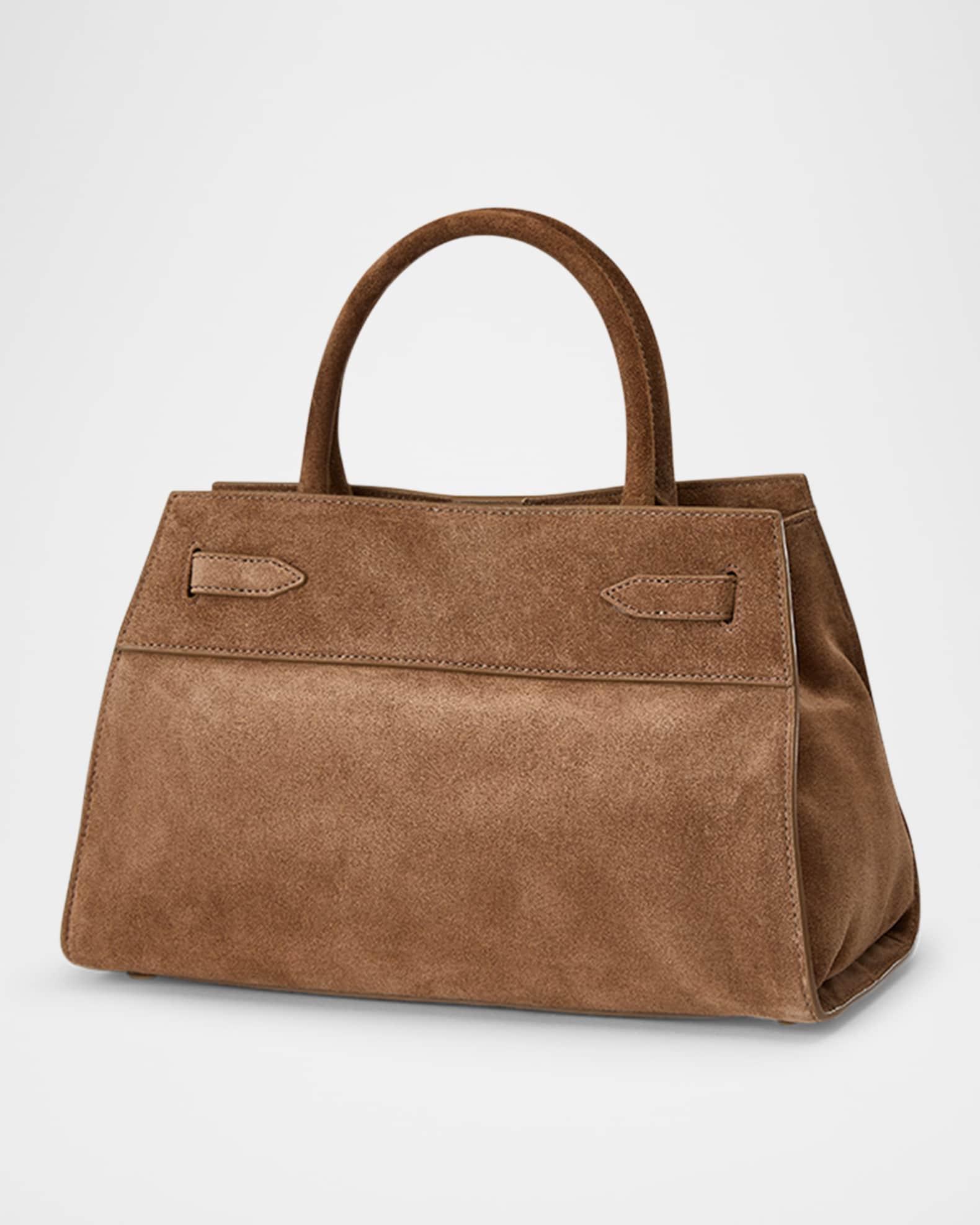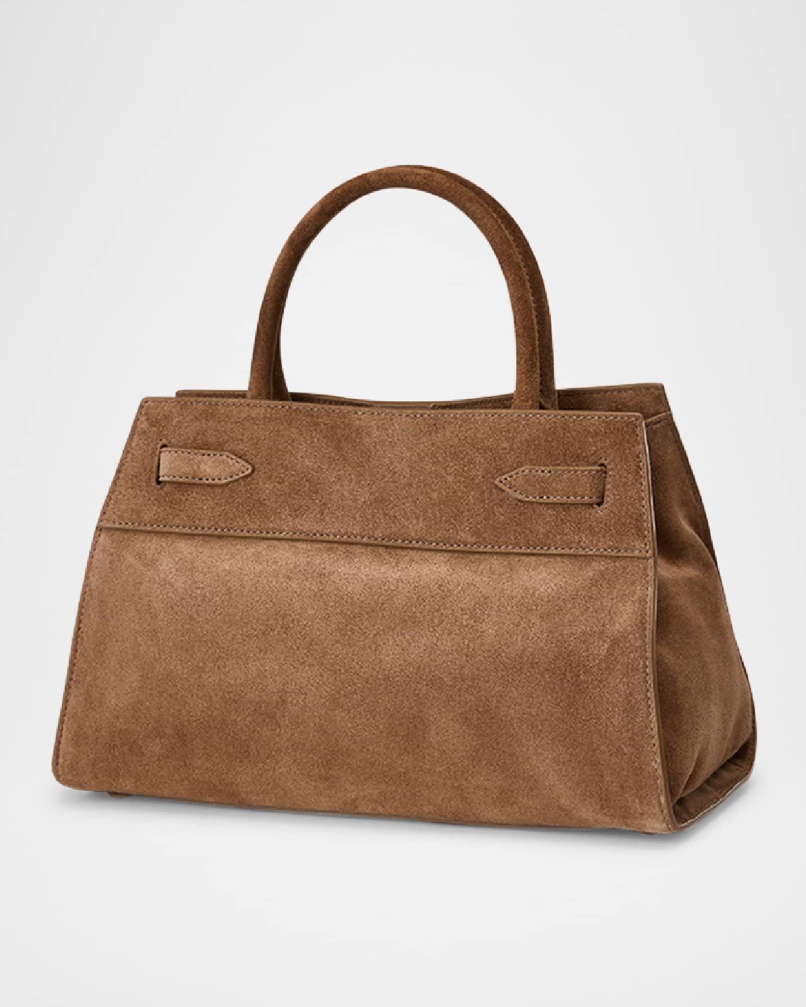 Veronica Beard "Dash" top handle bag in leather and suede Top handles, 4.7" drop Crossbody strap, 22.8"L Can be worn as a top handle or crossbody bag Open top with magnetic closure; adjustable belted straps at front Interior, one zip pocket Lining: Leather/polyester Approx. 8.7"H x 13"W x 5.7"D Imported Care Instructions: Due to the delicate nature of the leather used, please note that it may scratch or crease over time. Please avoid rough surfaces when handling this product to preserve its finish. Store in a cool, dry place and wipe any surface dirt with a dry cloth.