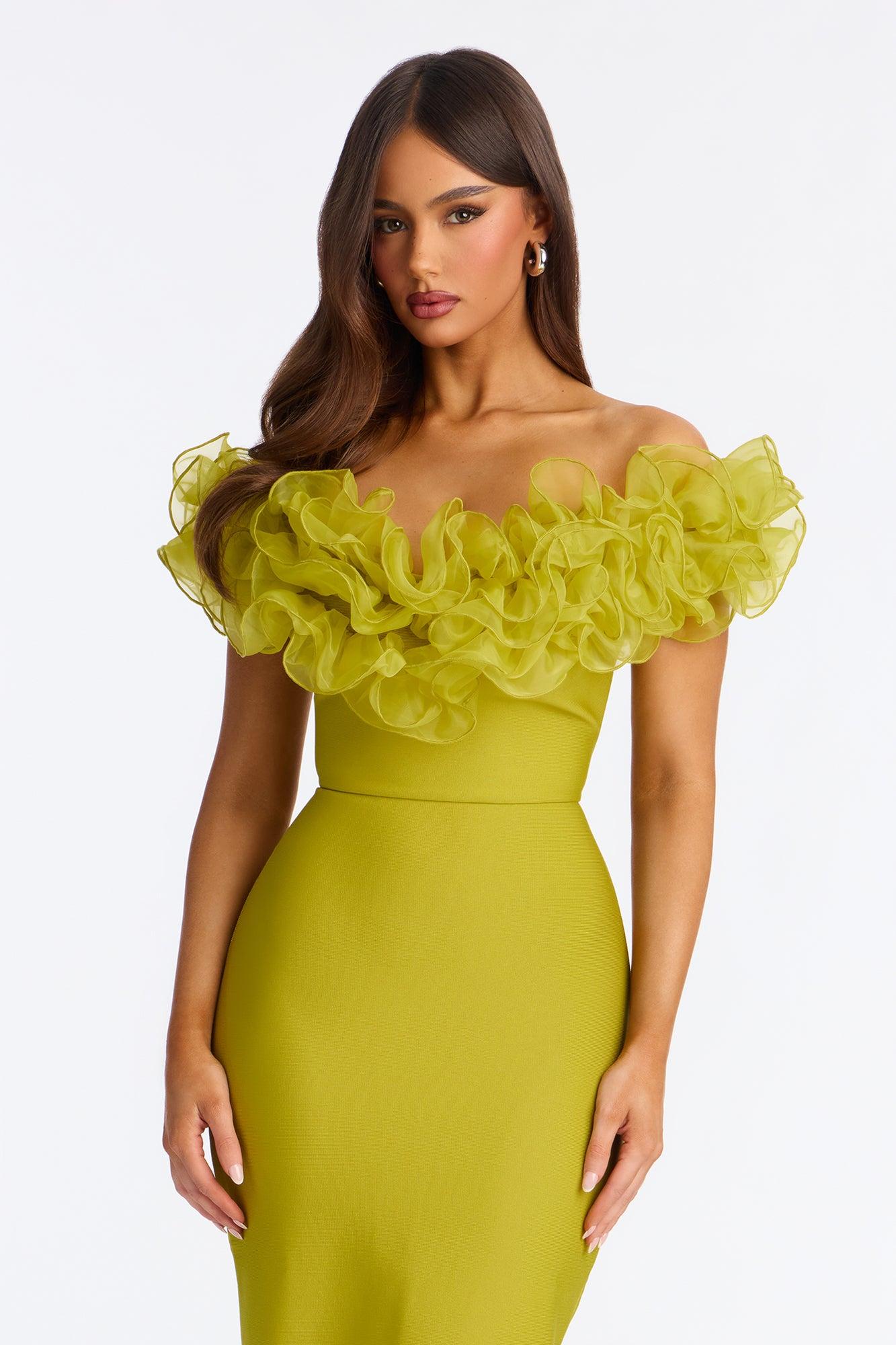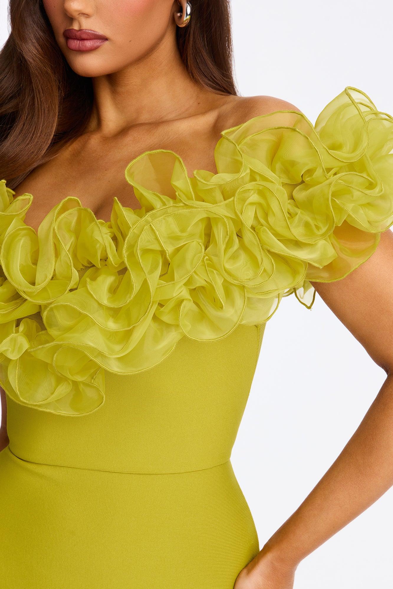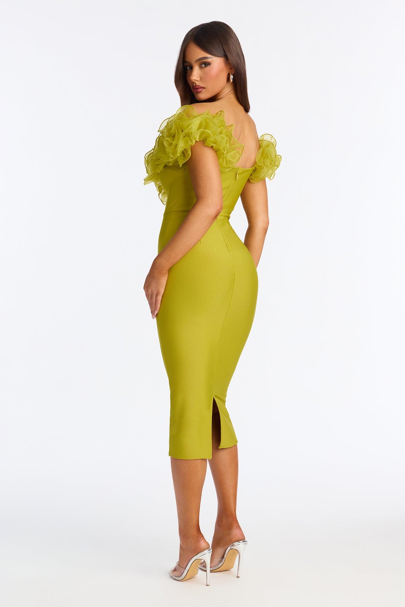 Date Night Ruffle Bandage Midi Dress - Chartreuse Female