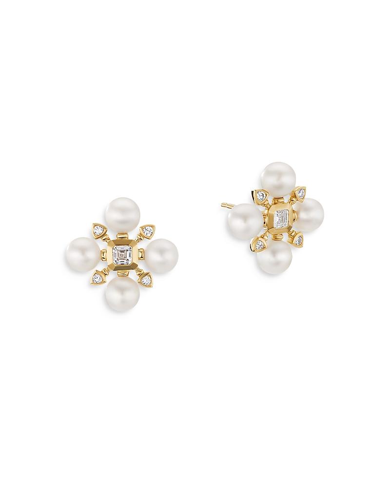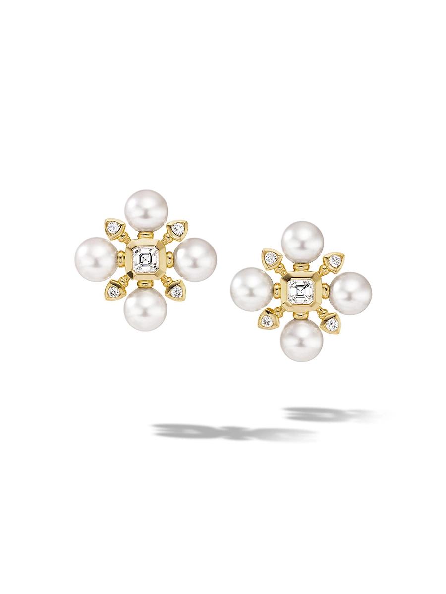 From the Renaissance Collection. Crafted of 18K yellow gold, David Yurmans Renaissance stud earrings are tipped with luminous white Akoya pearls. Asscher and trillion-cut white diamonds lend brilliant radiance to this exquisite pair. Akoya pearls, 5-5.5mm Diamonds, 0.4 tcw 18K yellow gold Post back Imported SIZE Diameter, about 0.65 ABOUT THE BRAND David, a sculptor, and his wife, Sybil, a painter, launched their innovative jewelry brand in 1980 in New York City. Since then, the American design house has pioneered cutting-edge collections - from its iconic combination of sterling silver and diamonds to signature pinky rings. Today, with their son Evan, the Yurmans continue to deliver timeless pieces inspired by nature, art, ancient symbols and Manhattans stunning architecture. Lsd Jewelry - David Yurman > David Yurman > Saks Fifth Avenue > Barneys. David Yurman. Size: 0.
