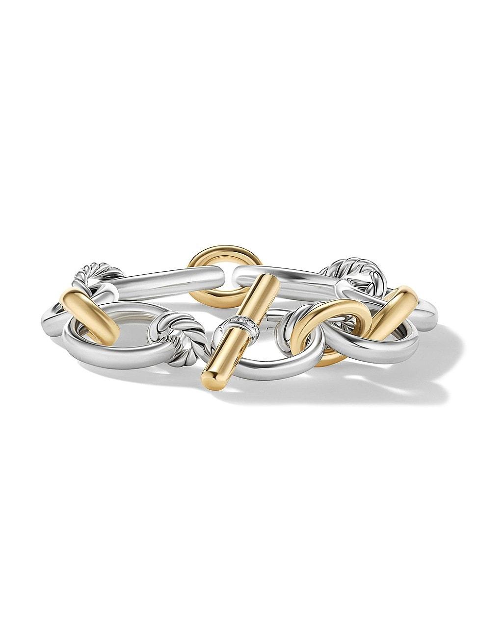 Inspired by the artistic energy and bustling rhythm of downtown NYC, David Yurman Mercer offers a new iteration of a standard oval link chain, featuring links of alternating lengths, modern toggle elements, and a more relaxed oval shape. Sterling silver with 18-karat bonded yellow gold Pave diamonds, 0.07 total carat weight Bracelet, 20-25 mm Push clasp Imported ABOUT THE BRAND David, a sculptor, and his wife, Sybil, a painter, launched their innovative jewelry brand in 1980 in New York City. Since then, the American design house has pioneered cutting-edge collections - from its iconic combination of sterling silver and diamonds to signature pinky rings. Today, with their son Evan, the Yurmans continue to deliver timeless pieces inspired by nature, art, ancient symbols and Manhattans stunning architecture. Lsd Jewelry - David Yurman > David Yurman > Saks Fifth Avenue > Barneys. David Yurman. Color: Silver. Size: Medium.