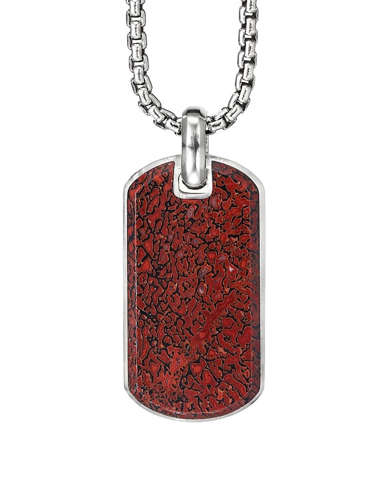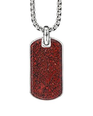 David Yurman Mens Chevron Tag in Sterling Silver with Red Agate, 35mm