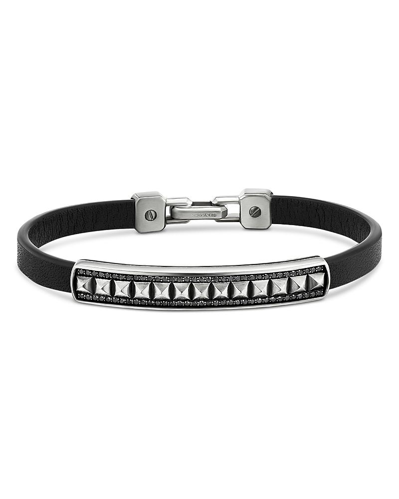 David Yurman Mens Sterling Silver Black Diamond Pave Pyramid Leather Bracelet-Jewelry & Accessories