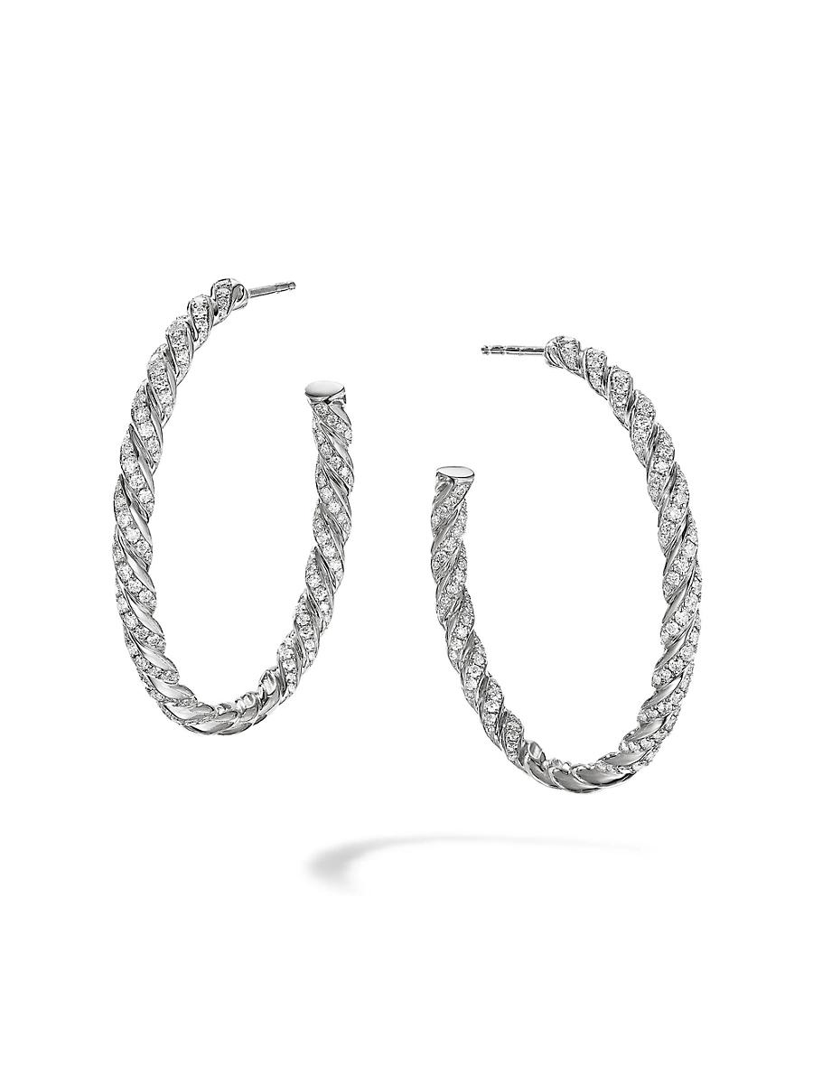 From the Paveflex collection. Pavflex hoop earrings in 18K white gold. Pav diamonds, 1.50 tcw 18K white gold Imported SIZE Drop, 1.57 (40mm) ABOUT THE BRAND David, a sculptor, and his wife, Sybil, a painter, launched their innovative jewelry brand in 1980 in New York City. Since then, the American design house has pioneered cutting-edge collections - from its iconic combination of sterling silver and diamonds to signature pinky rings. Today, with their son Evan, the Yurmans continue to deliver timeless pieces inspired by nature, art, ancient symbols and Manhattans stunning architecture. Lsd Jewelry - David Yurman > David Yurman > Saks Fifth Avenue > Barneys. David Yurman. Color: White Gold.
