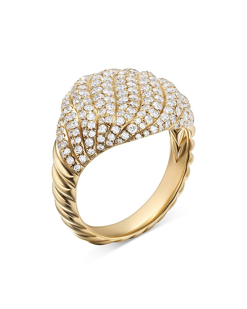Inspired by the traditional signet ring, the Pinky Ring Collection brings a modern spirit to a classic form with elegant contours. 18-karat yellow gold Pav diamonds, 0.85 total carat weight Ring, 13mm This item can be engraved Imported ABOUT THE BRAND David, a sculptor, and his wife, Sybil, a painter, launched their innovative jewelry brand in 1980 in New York City. Since then, the American design house has pioneered cutting-edge collections from its iconic combination of sterling silver and diamonds to signature pinky rings. Today, with their son Evan, the Yurmans continue to deliver timeless pieces inspired by nature, art, ancient symbols and Manhattans stunning architecture. Lsd Jewelry - David Yurman > David Yurman > Saks Fifth Avenue > Barneys. David Yurman. Color: Gold. Size: 4.