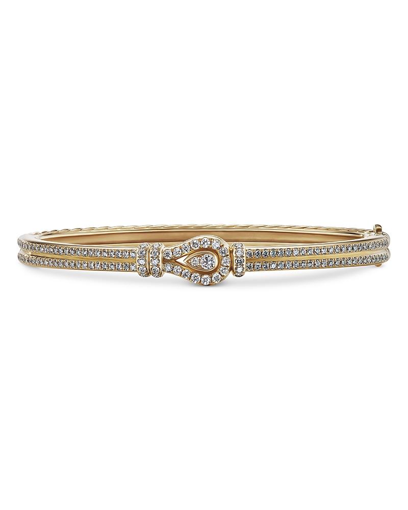 From the Thoroughbred Collection. David Yurmans equestrian-inspired loop bracelet is crafted of polished 18K yellow gold encrusted with shimmering pav diamonds. Diamonds, 1.02 tcw 18K yellow gold Push clasp Imported SIZE Width, about 4.5mm Extra Small wrist circumference, 5-5.5 (12.7-14cm) Small wrist circumference, 5.5-6.0 (14-15.2cm) Medium wrist circumference, 6.0-6.5 (15.2-16.5cm) Large wrist circumference, 6.5-7.0 (16.5-17.8cm) Extra Large wrist circumference, 7.0-7.5 (17.8-19cm) Please note: If you are between sizes, please opt for the larger size. ABOUT THE BRAND David, a sculptor, and his wife, Sybil, a painter, launched their innovative jewelry brand in 1980 in New York City. Since then, the American design house has pioneered cutting-edge collections - from its iconic combination of sterling silver and diamonds to signature pinky rings. Today, with their son Evan, the Yurmans continue to deliver timeless pieces inspired by nature, art, ancient symbols and Manhattans stunning architecture. Lsd Jewelry - David Yurman > David Yurman > Saks Fifth Avenue > Barneys. David Yurman. Color: Gold. Size: Medium.