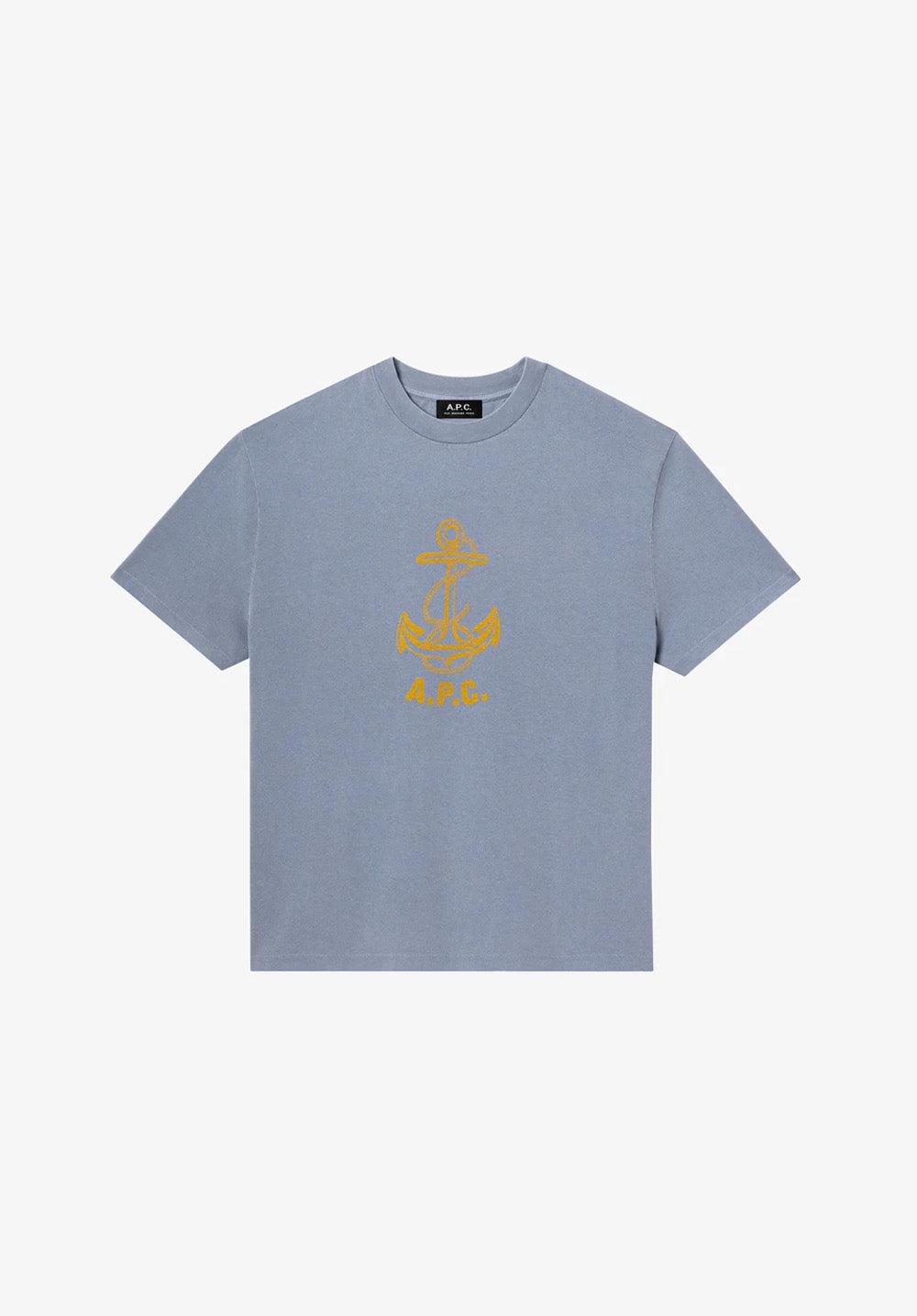 - Cropped and boxy cut with a loose fit. - Crew neck. - Yellow print A.P.C. logo and anchor in the centre. - 100% organic cotton.