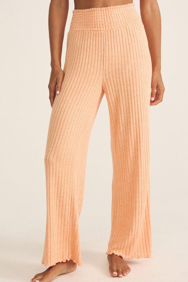 High rise Full length Smocked waistband Midweight Soft silky rib Regular fit Silky Rib: 97% Polyester, 3% Spandex Matching items ZLT221723 Zoe Bra ZLT243718 So Soft Rib Tee ZLT243723 Happy Camper Tee