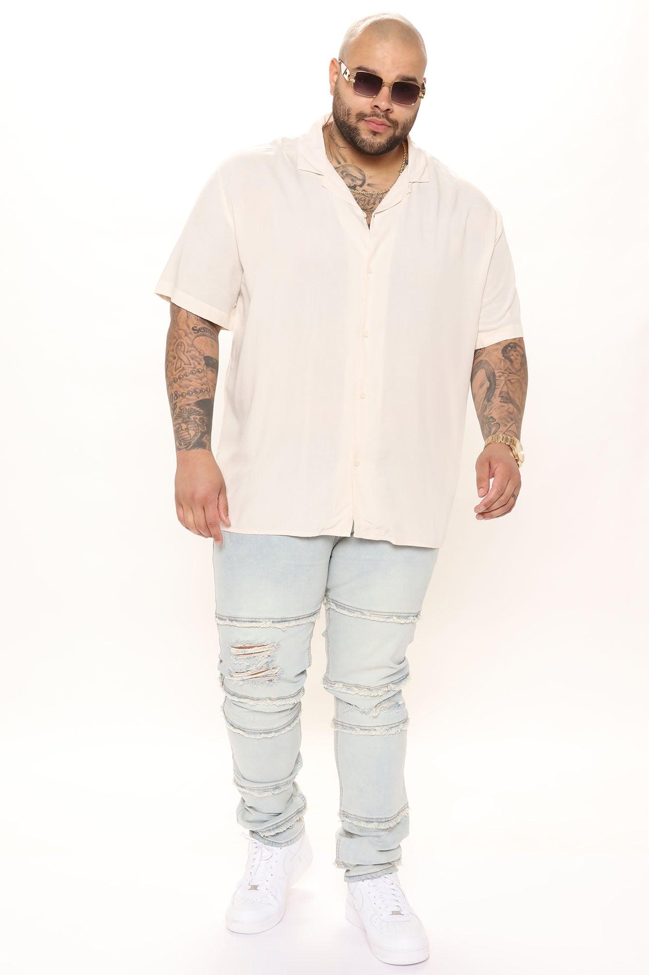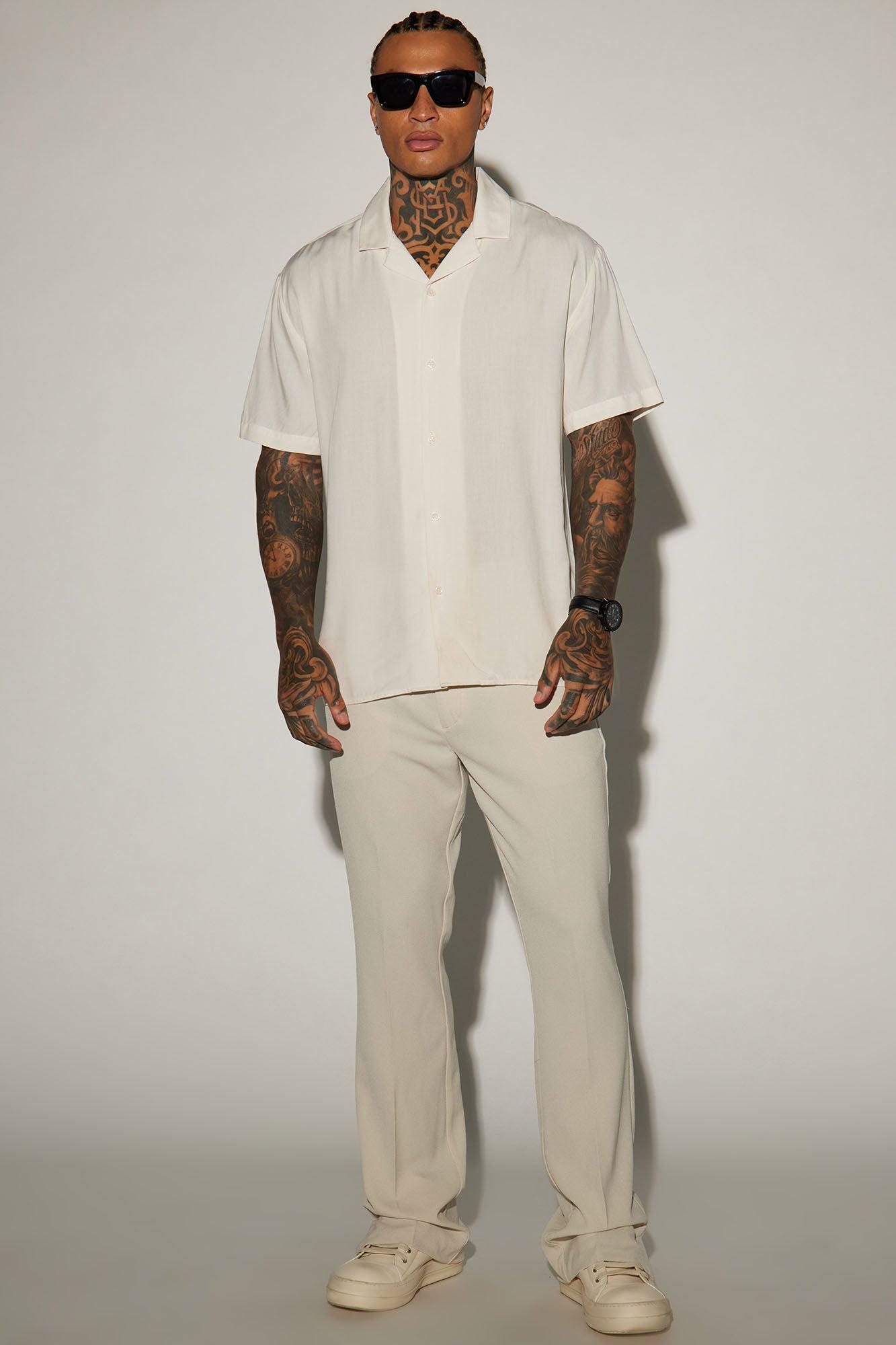 Available In Black, Off White And White. Model Height: 6'2 - Wearing Large Big & Tall: Height 6'3 - Wearing XXXL Short Sleeve Fold Down Collar Button Front 100% Viscose Imported California Proposition 65WARNING: Cancer and Reproductive Harm - www.P65Warnings.ca.gov.