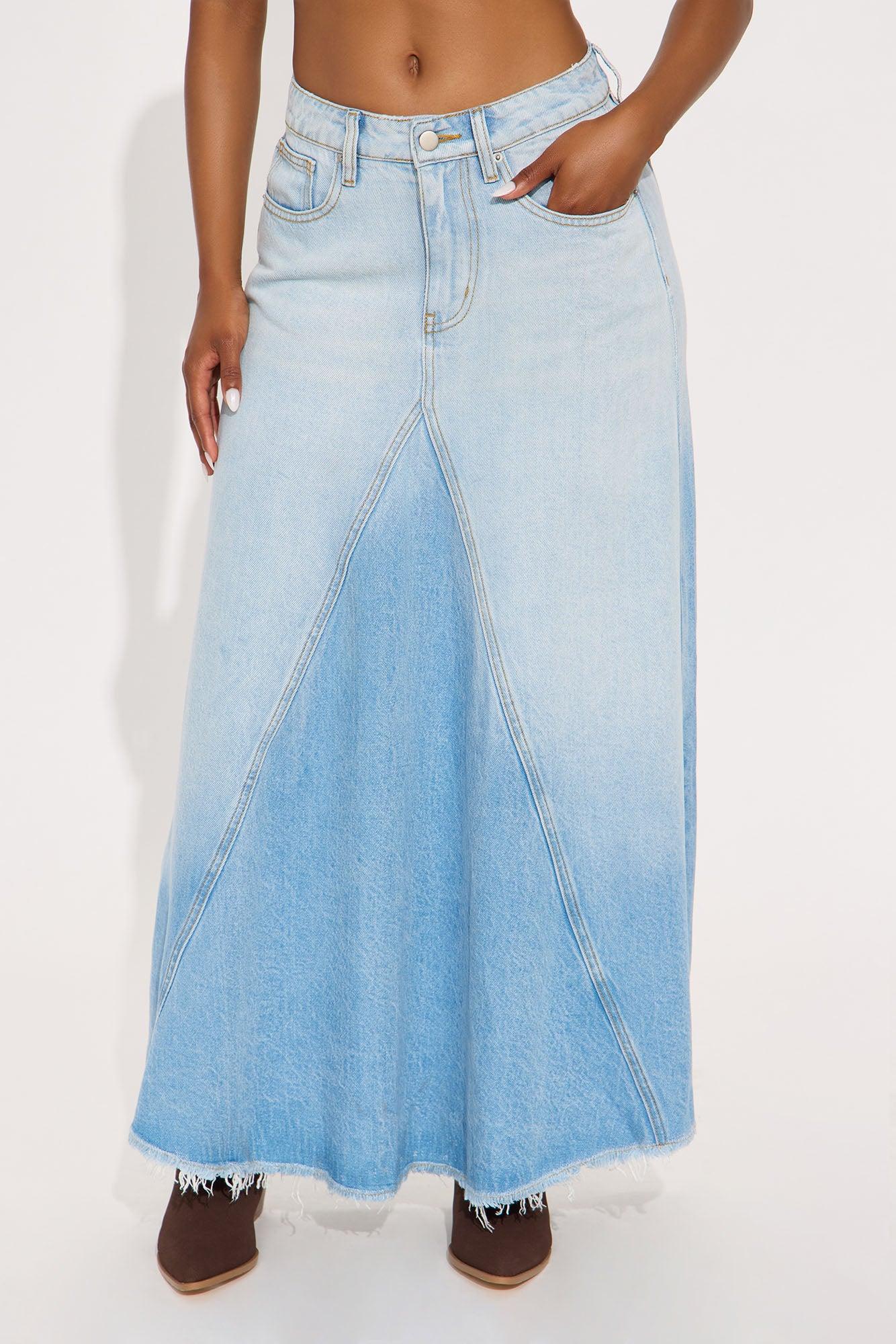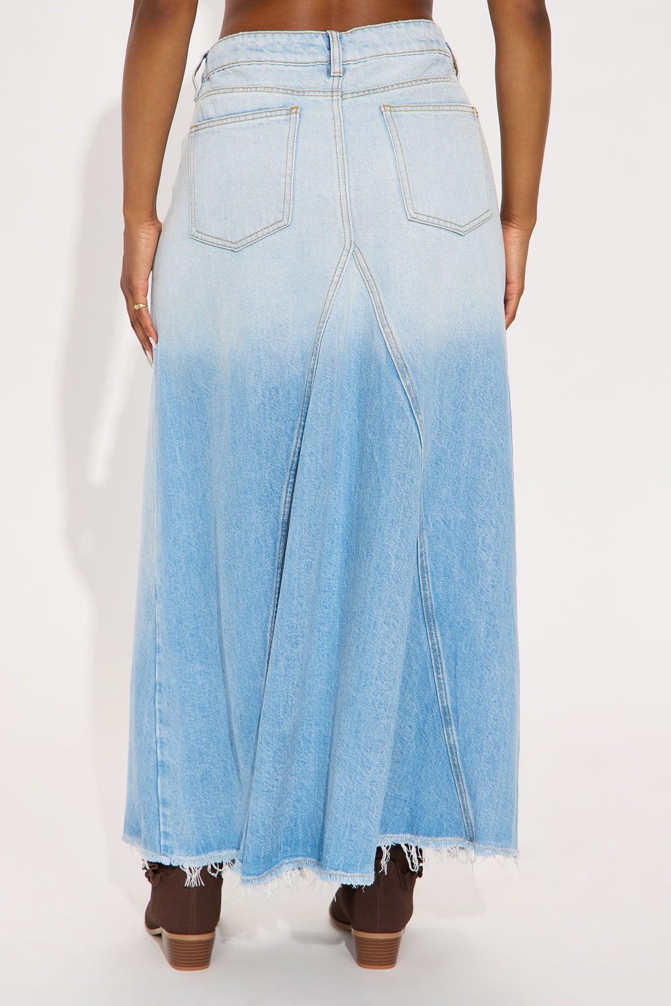 Available In Light Wash. Maxi Skirt Button and Zipper Closure Low Rise 5 Pocket Denim Rigid Non Stretch 36.5" Length 100% Cotton Disclaimer- Due To The Specialized Wash Process, Each Garment Is Unique.Model Height: 6'2 100% Lyocell Imported California Proposition 65WARNING: Cancer and Reproductive Harm - www.P65Warnings.ca.gov.
