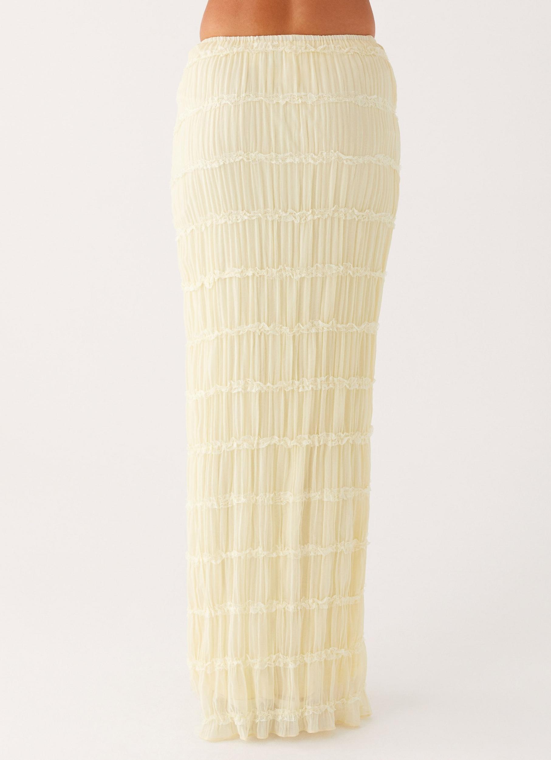 Peppermayo Exclusive The Daydreaming Low Rise Maxi Skirt is a perfect blend of relaxed elegance and sultry charm. With a low-rise fit, fully lined for comfort, and textured fabric that flows with every step, it’s designed to take you from golden skies to neon nights with ease. - Low Rise- Maxi Length- Elastic Waistband- Fully Lined- Textured Fabric- 100% Polyester Size AU 8 / US 4 garment measurements: Waist: 66 cm / 26 inHip: 86 cm / 33.9 inHem: 86 cm / 33.9 inLength: 102.5 cm / 40.4 in Olivia is 170cm and wearing a size AU 8 / and US 4