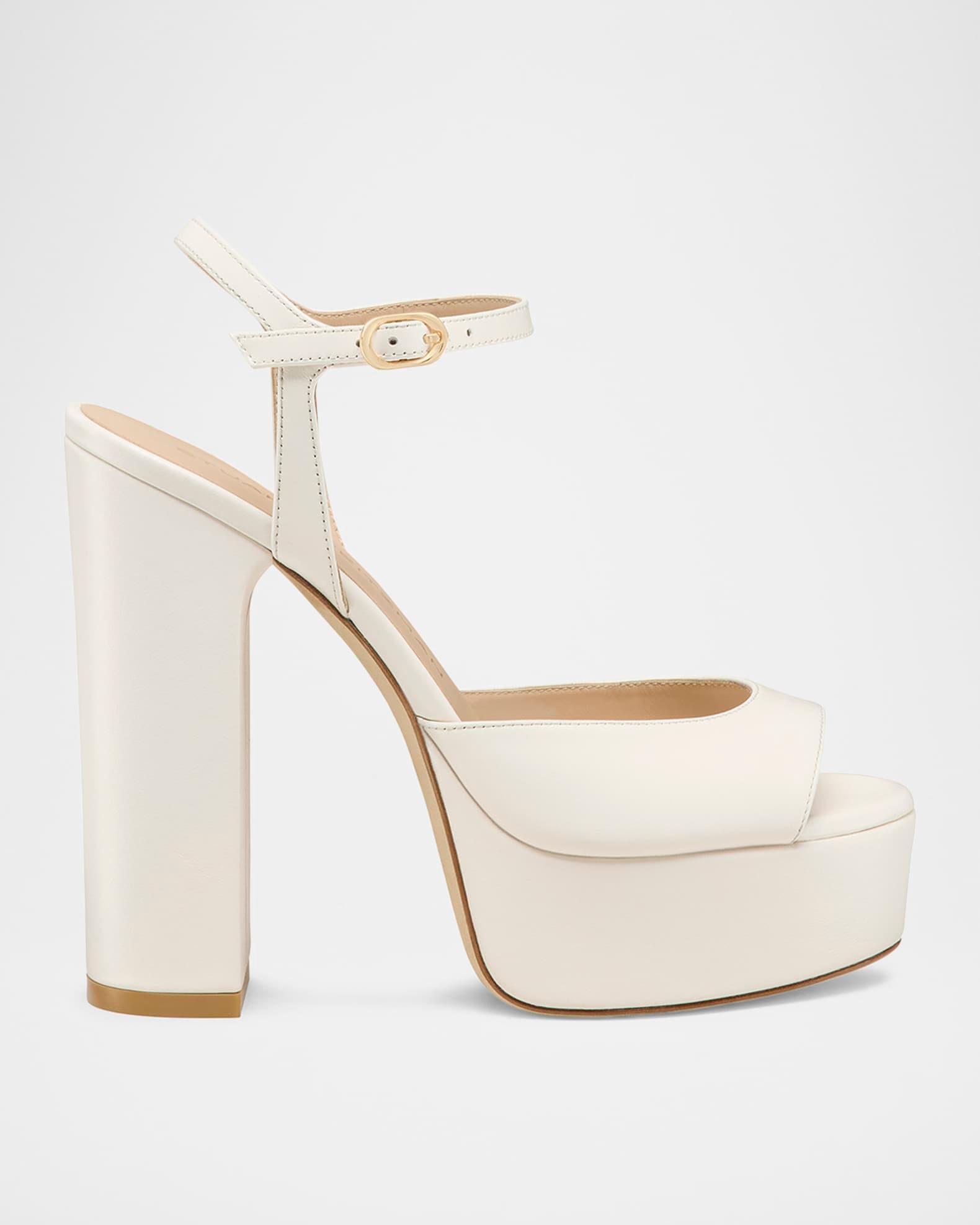 Stuart Weitzman "Dayna Boost" sandals in smooth calfskin leather 5.25 in / 130 mm block heel; 1.25 in / 30 mm platform Open toe Adjustable ankle strap Leather outsole Spot clean, hand wash Made in Spain Shipping Direct from Vendor, usually ships within 30 business days.